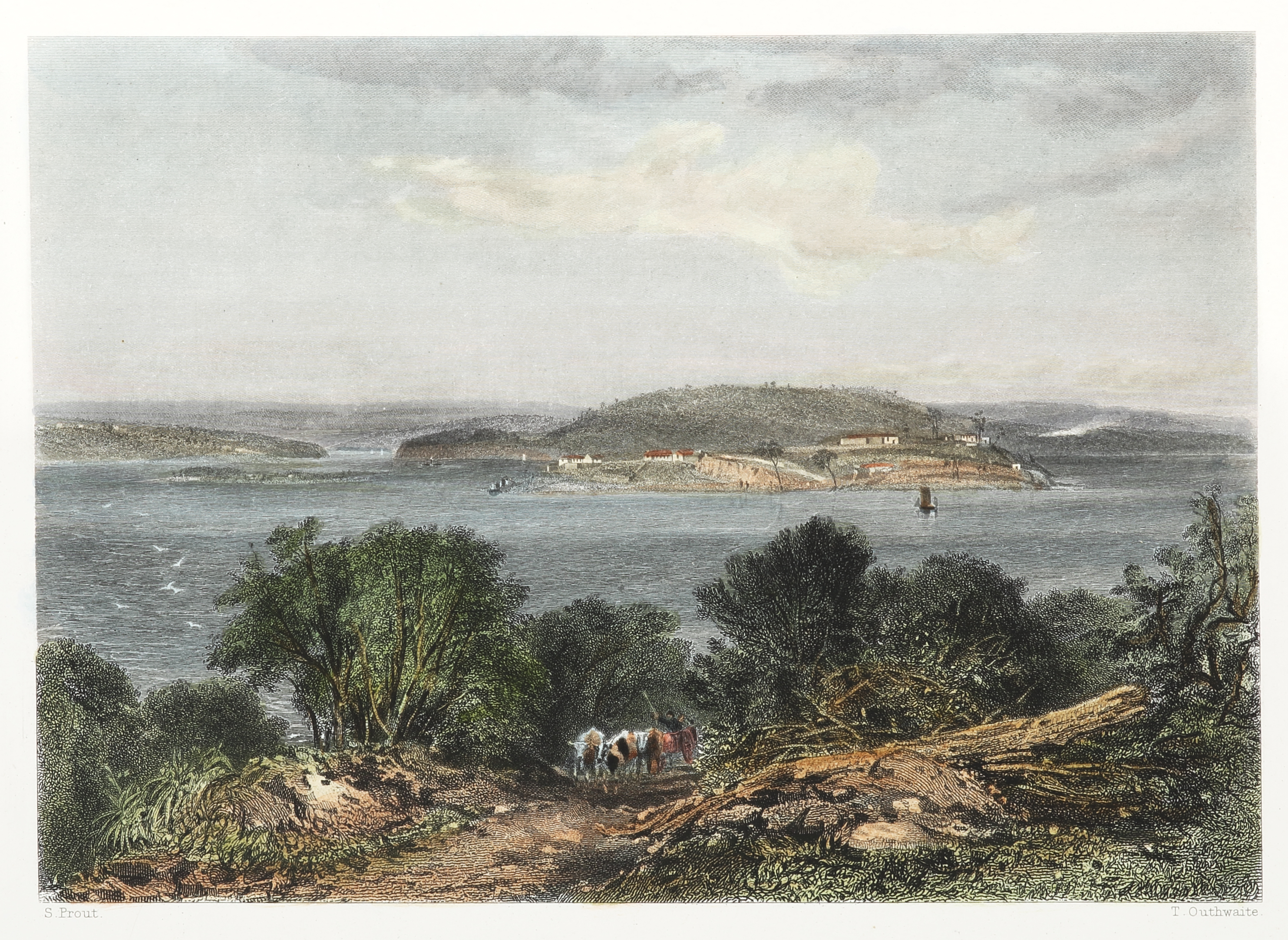 John Skinner Prout (1805-1876) Important colonial artist born in England Prout emigrated to Australia in 1840 with his wife and seven children. He soon became involved in the colonial life as a commercial artist, lecturing and publishing his own series of lithographs titled, Sydney Illustrated and Tasmania Illustrated in 1844-1846. His time in Tasmania teaching drawing, sketching and watercolours created interest and fostered a number of colonial amateurs. He is represented in all major institutional collections. English artist, born in Plymouth, the nephew of Samuel Prout (1783-1852), whose architectural works were praised by John Ruskin. In 1828, John married Maria Heathilla Marsh in Devon. He taught himself art and dabbled in lithography. His focus was on capturing topographical views of ancient sites in western England. Moving to Sydney in 1840, he faced challenges but found success, including illustrating a journal and giving art lectures. He later visited Tasmania, where he gave popular lectures and published illustrated works. Tragedy struck with the death of his son in 1845. Prout returned to London in 1848, where he continued to promote Australian themes through lectures and publications. He died in 1876, leaving behind a significant artistic legacy. His influence on Tasmanian art was profound, inspiring a surge in landscape painting.