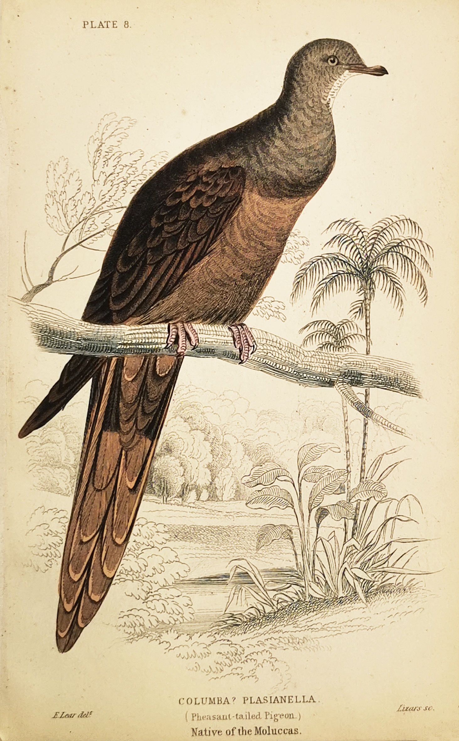 Fine small engraving of the Brown Cuckoo-dove. Modern binomial name: Macropygia phasianella. First described: Temminck 1821Distribution: QLD, NSW