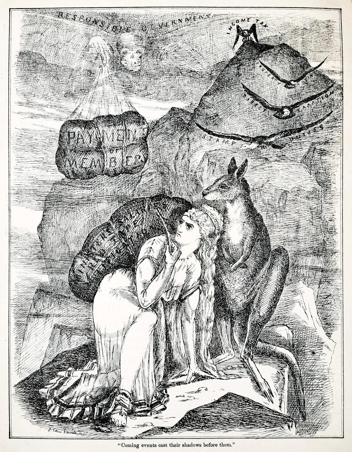 Very rare satirical cartoon from the original edition of the Portonian which was published in Port Adelaide, South Australia between 1871-79.