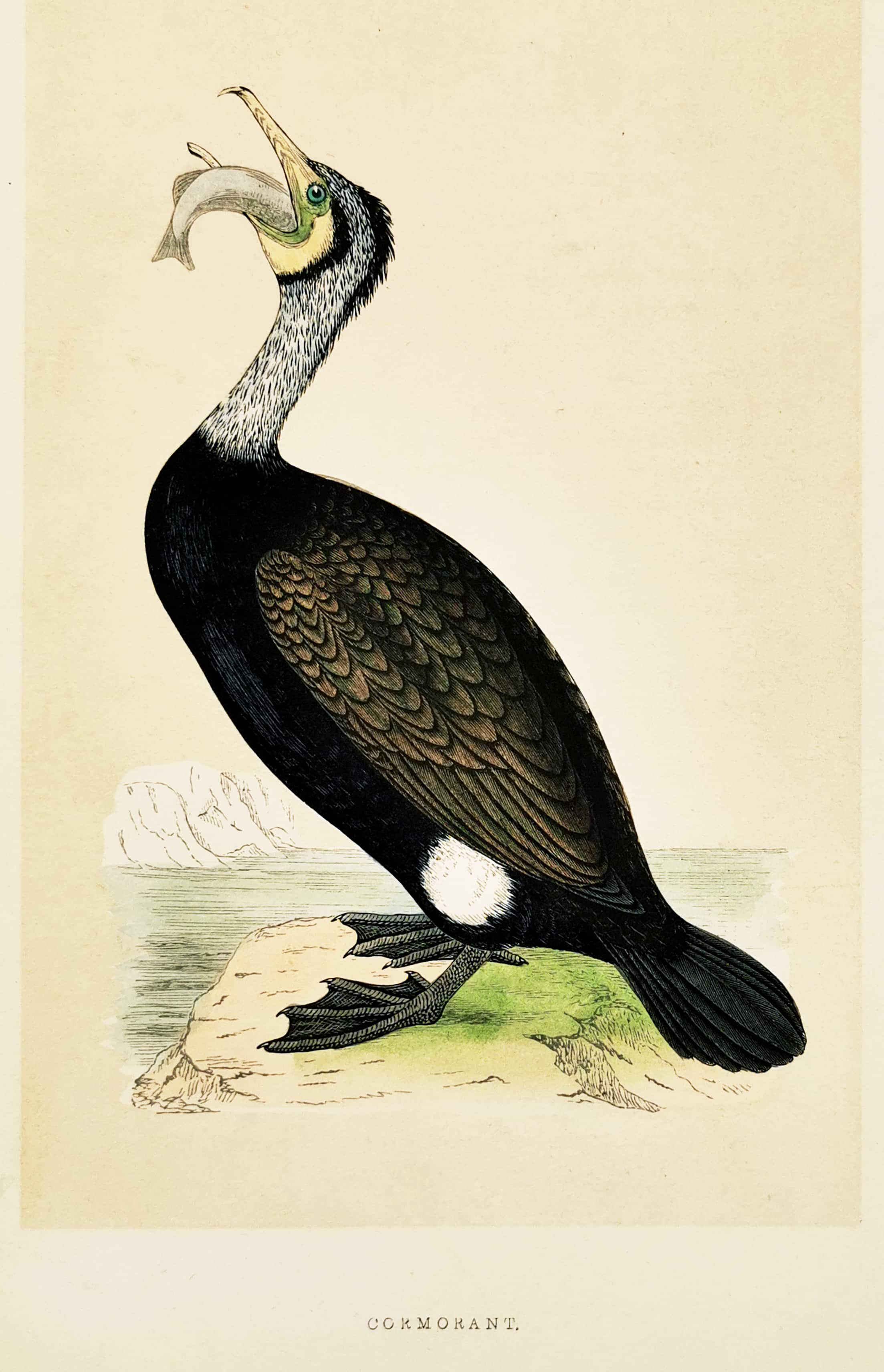 Superb original hand coloured engraving of the Australian Black Cormorant. Common name : Black Cormorant, Black Shag (NZ) Binomial name: Phalacrocorax carbo First described: Linnaeus 1758 Distribution: Australia wide & New Zealand