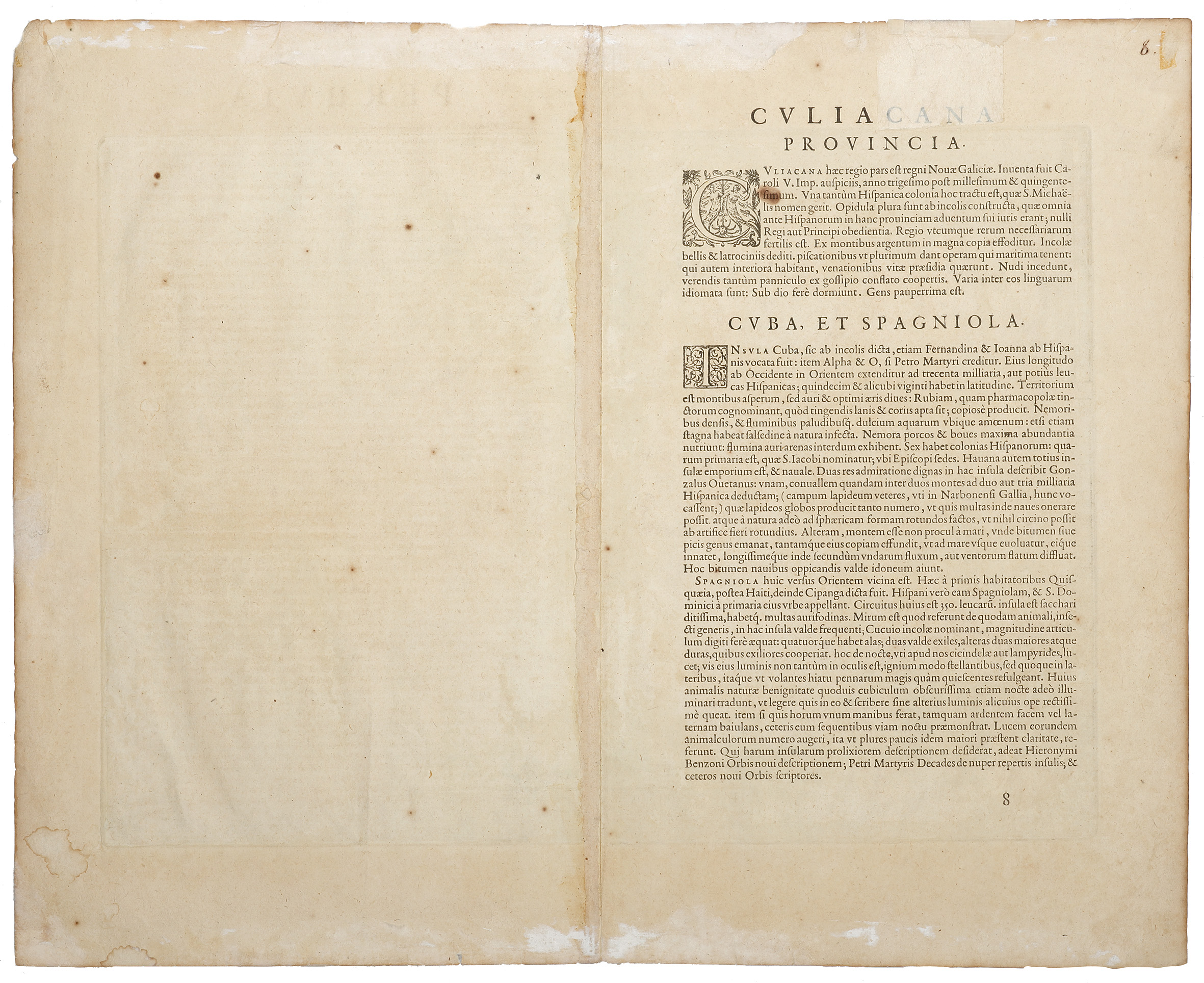 This edition is identified by the Latin text on the verso with the page number 8 and last line of text, left aligned: ceteros noui Orbis scriptores.