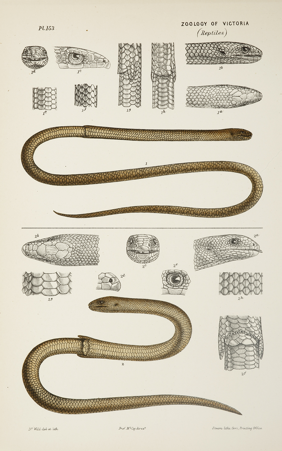 Modern Common Name: Gulfs delma, olive legless lizard and patternless delma) Modern Binomial Name: Delma inornata Distribution: Australia wide Rare lithograph from Frederick McCoy’s, “Natural history of Victoria; Prodromus of the zoology of Victoria; or figures and descriptions of the living … Read Full Description