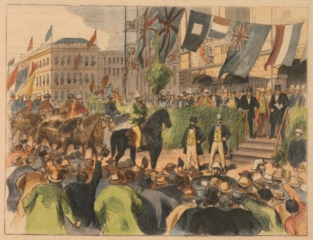 Demonstration at Adelaide on the Reception of Mr. Forrest. - Antique Print from 1875