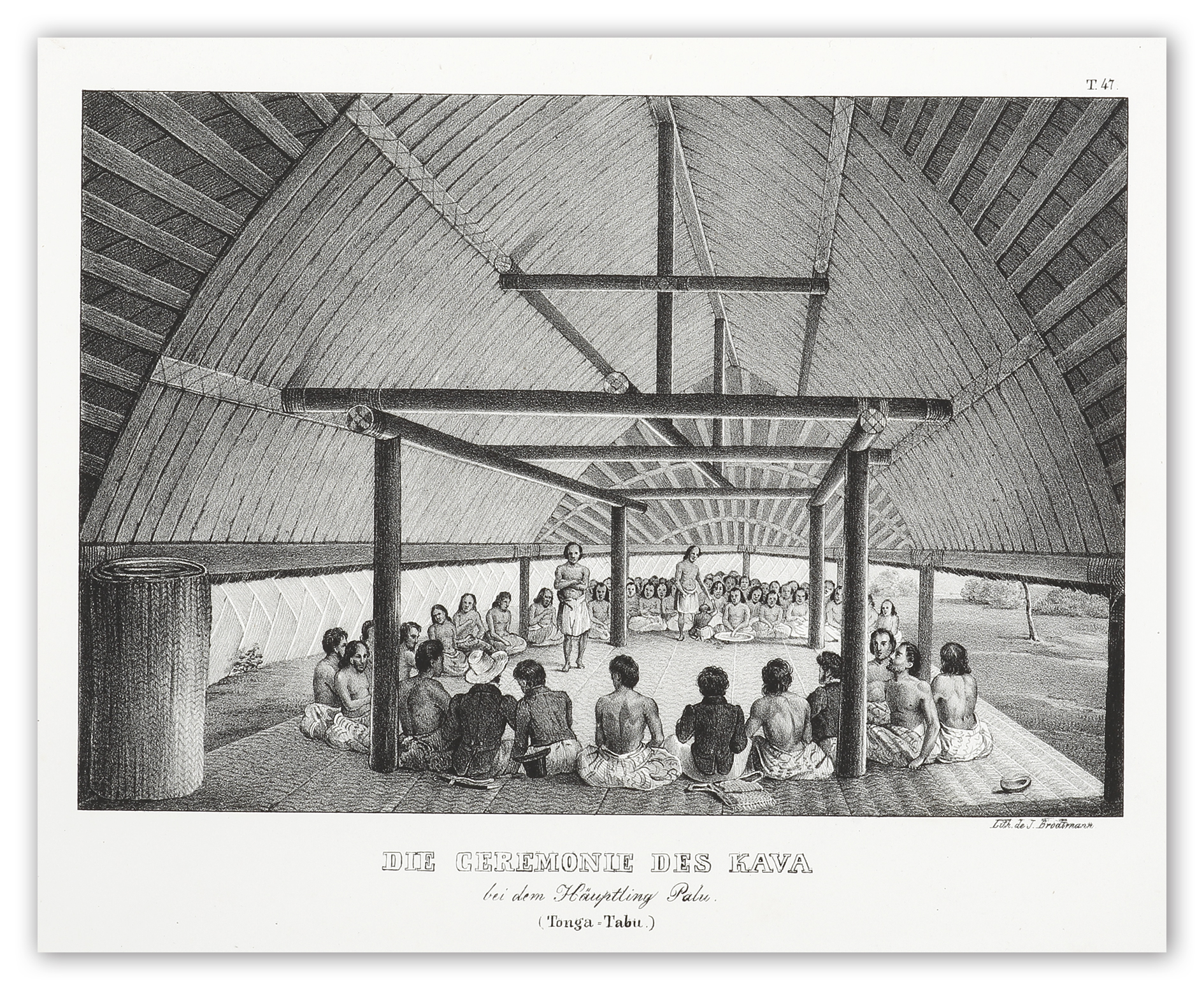 Smaller German titled issue of the lithograph first issued in Dumont d’Urville Voyage Autor du Monde. From Brodtman, “Entdeckungs, Reise der Franzosischen Corvette Astrolabe Unternomen auf Befehl Konig Karls X”.