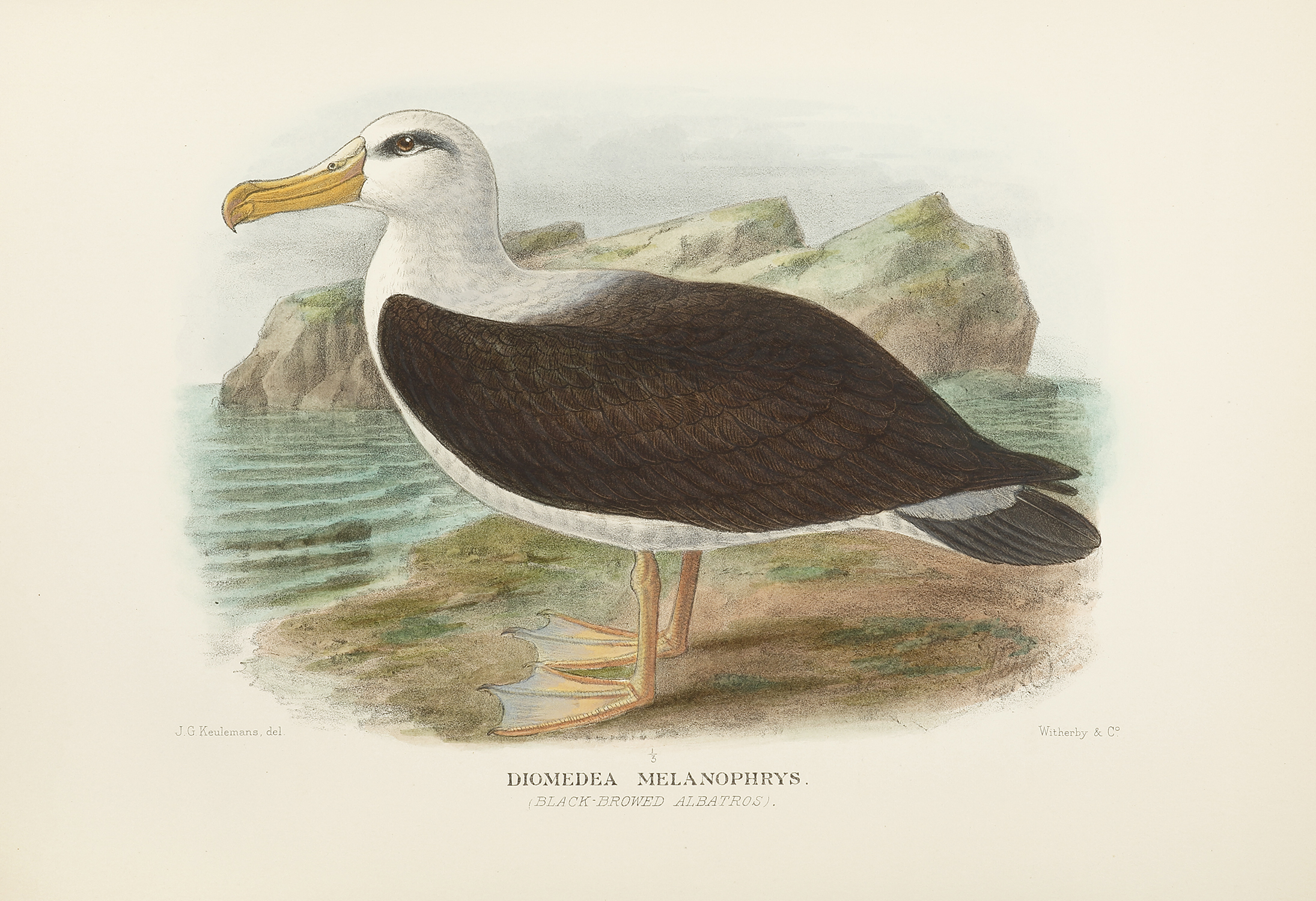 Superb lithograph of the BLACK BROWED ALBATROSS from the last great bird series on Australian ornithology, The Birds of Australia by G. Matthew’s.