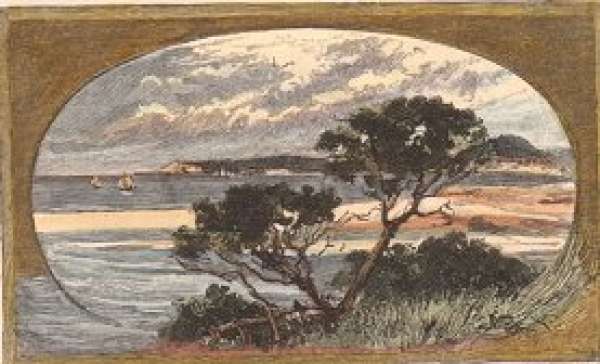 Scarce c.19th engraved view of Victor Harbour looking towards Granite Island.
