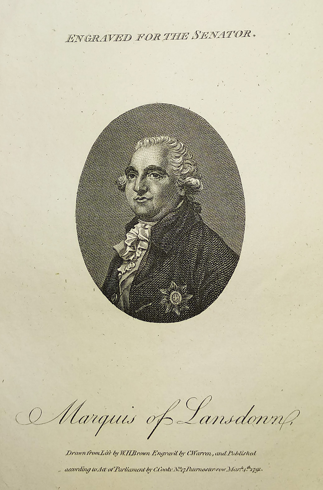 Finely engraving miniature oval portrait of Marquis of Lansdonm.