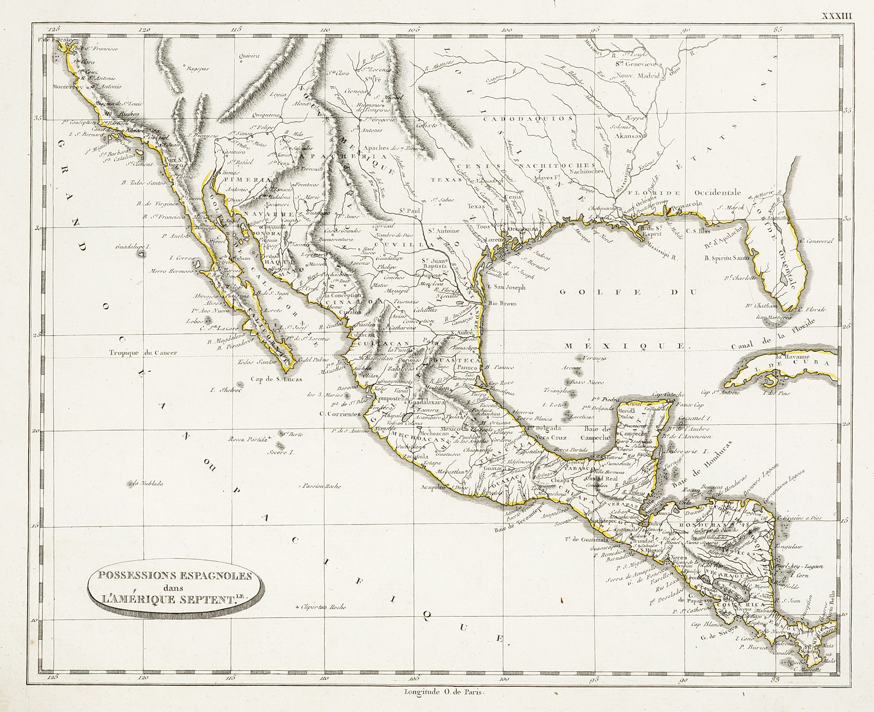 Early C19th map of the Spanish possessions in what was to become Texas and Mexico. From, Geographie Moderne Redigee sur un Nouveau Plan with the maps based on those of John Pinkerton.