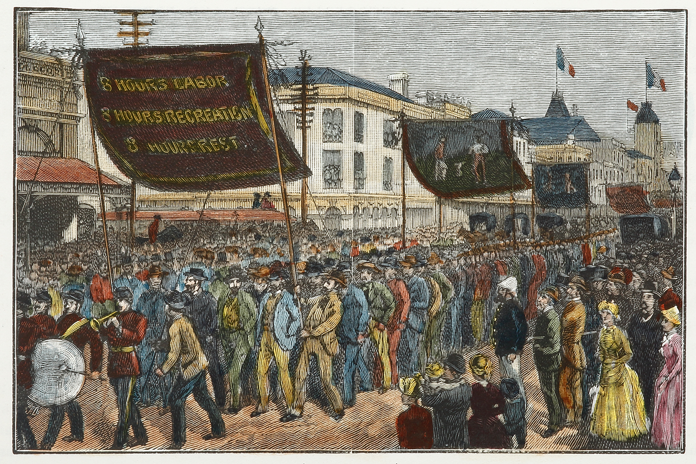 Scarce engraving of early labour demostrations.