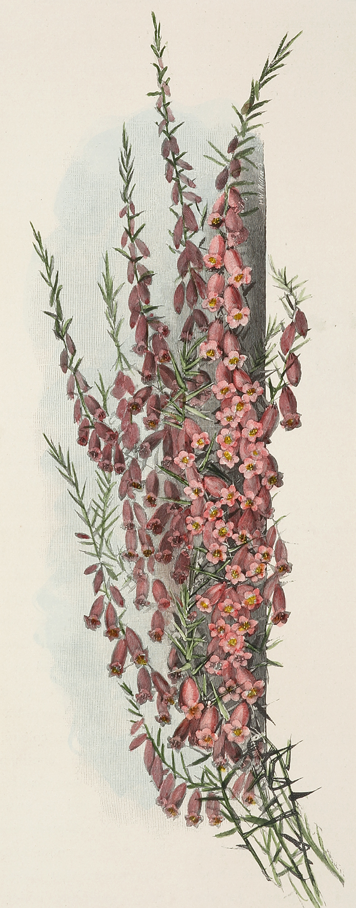 Scarce c.19th hand coloured engraving of the Pink Heath, the floral emblem of Victoria by Ellis Rowna (1842-1922).