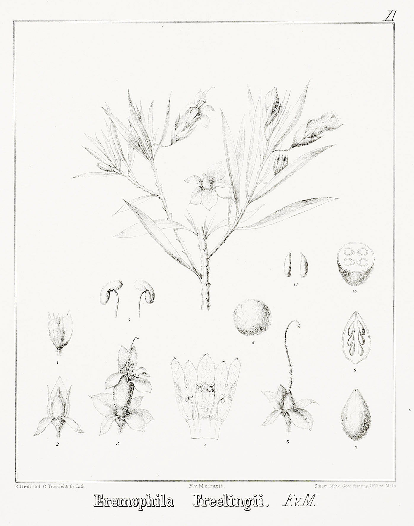 Scarce c.19th lithograph of the Limestone Fuchsia from Ferdinand von Mueller’s, Description and illustrations of the Myoporinous plants of Australia.