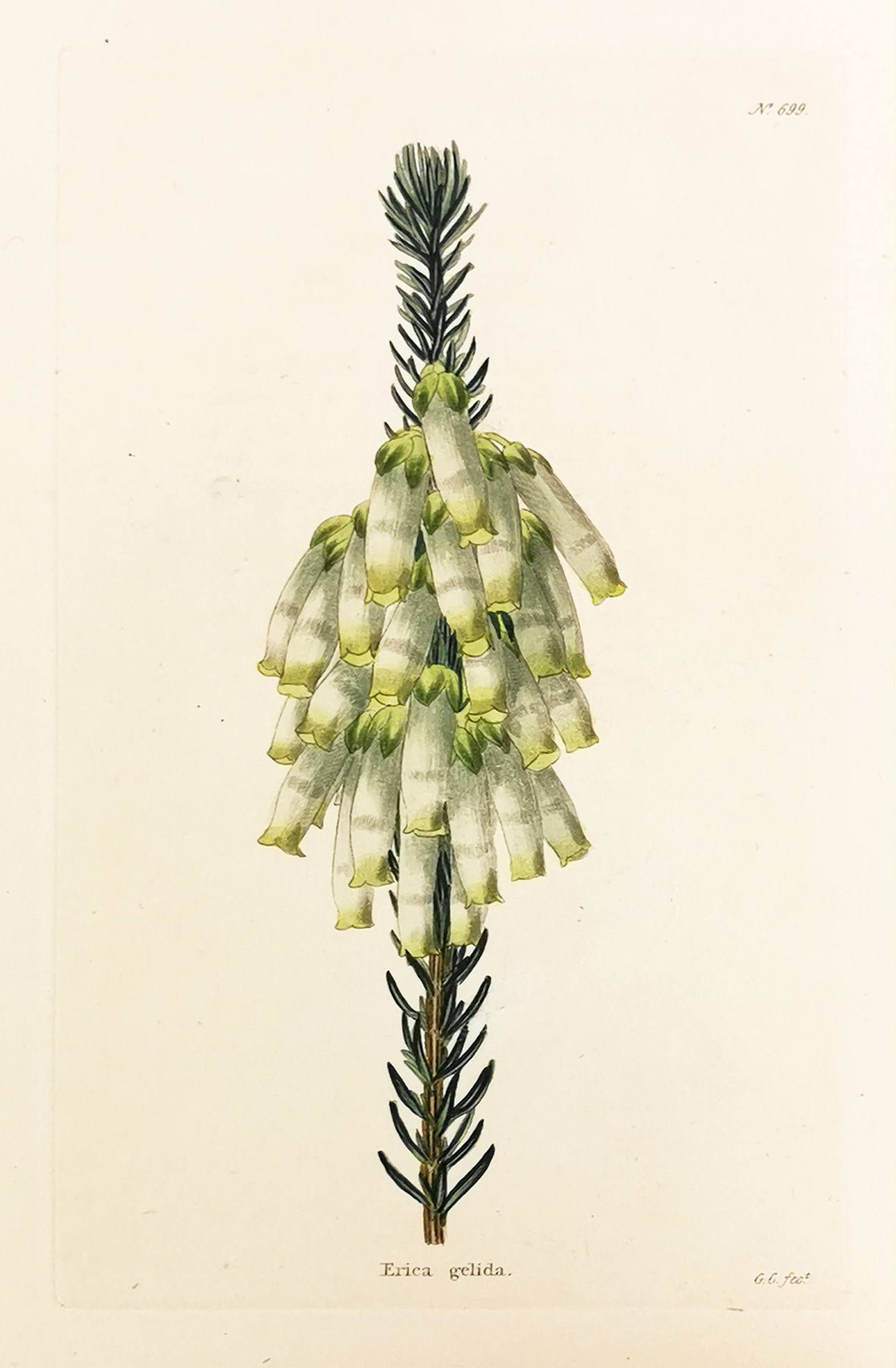 Fine early botanical engraving of a plant from the family Ericaceae, commonly known as the heath or heather family, found most commonly in acid and infertile growing conditions.
