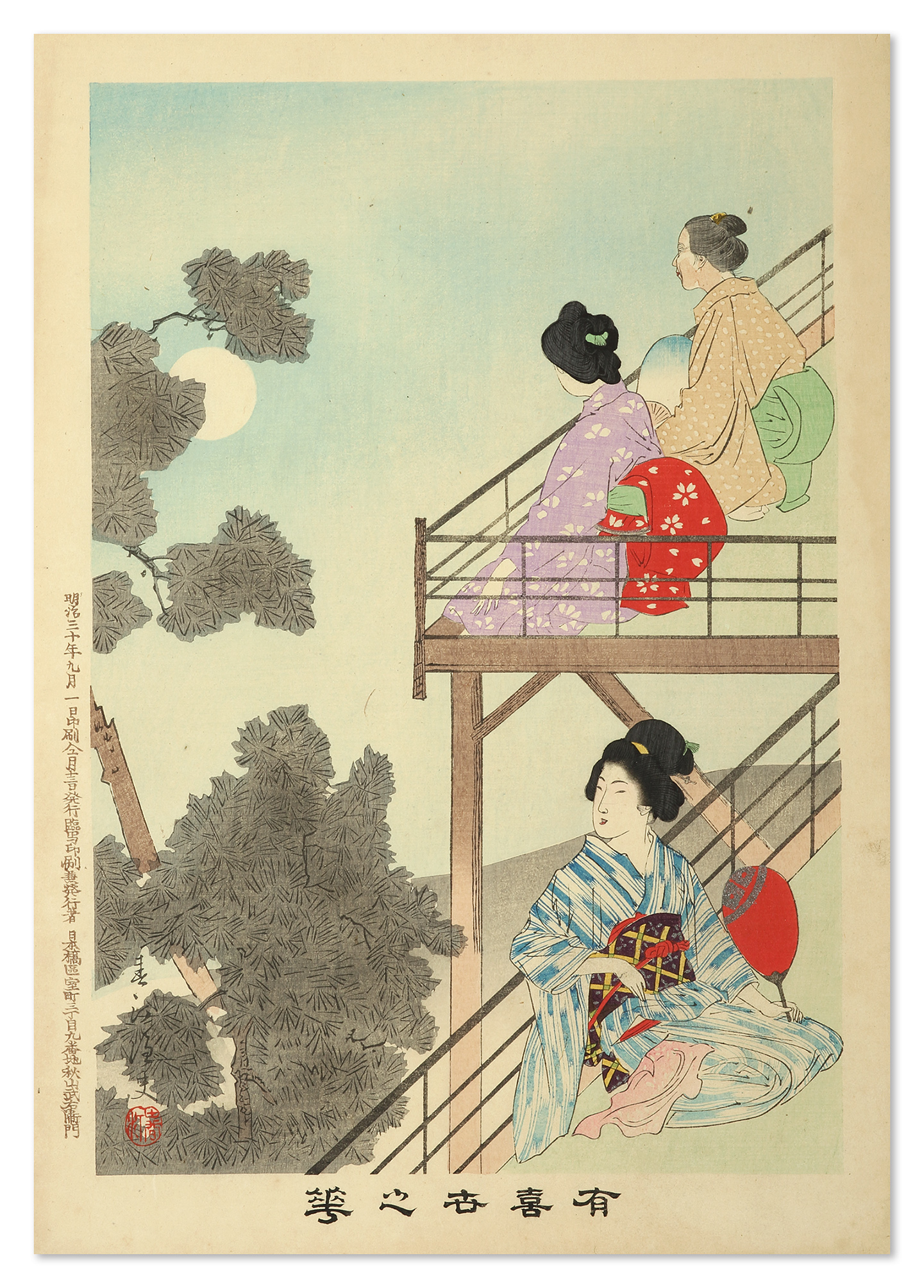 Evening Cool with Moon.from Shuntei’s, Ukiyo no Hana, (Flowers of the floating world)