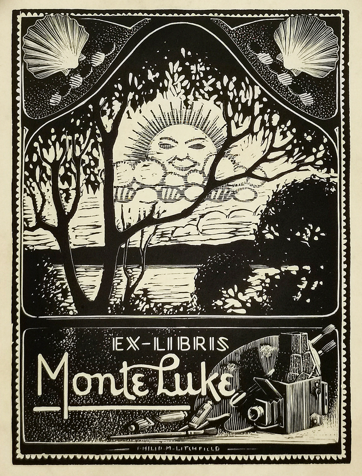 Phillip M. Lithchfield bookplate for the Sydney photographer Monte Luke.