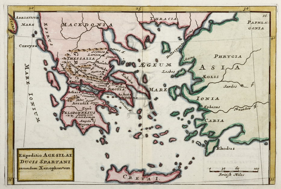 From, Thirty two new and accurate maps of the geography of the ancients, (Geographia classica emendata, ex Graecorum latinorumque authoribus antiquis). Moll was a Dutch �migr� who came to London about 1680 and worked there as an engraver, later setting up his own business and becoming, after the turn of the century, the foremost map publisher in England. His work enjoyed a high reputation and much of it was copied by other publishers.