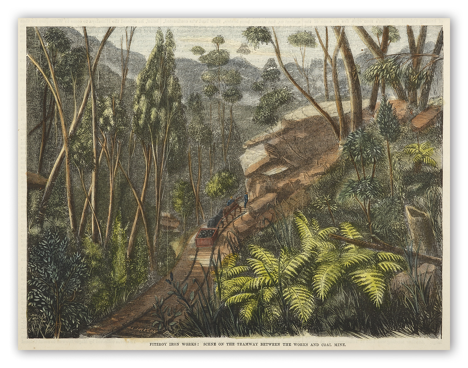 Rare colonial engraving of the Fitzroy Iron Works at Mittagong, New South Wales, which was the first commercial iron smelting works in Australia beginning operations in 1848.