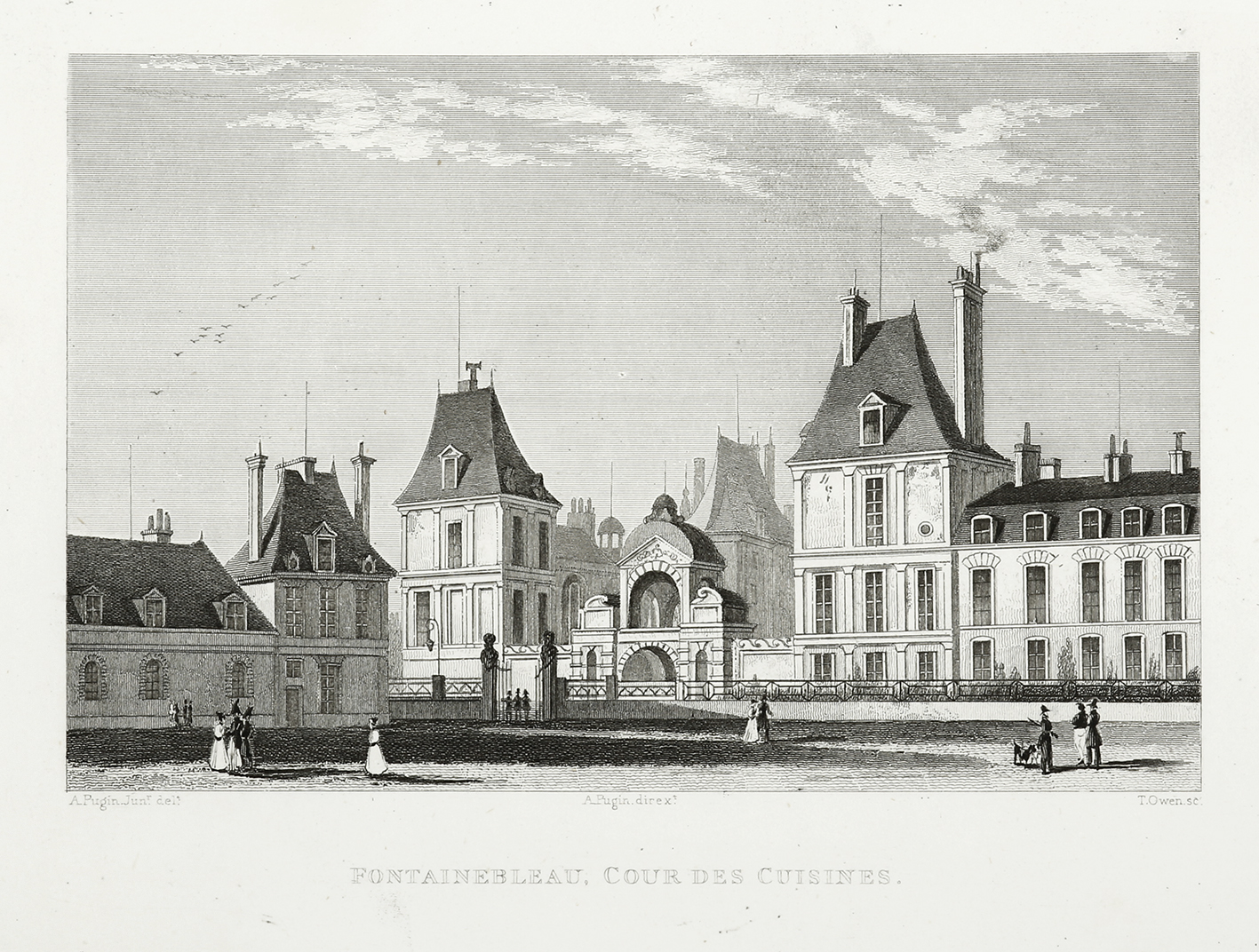 Nineteenth century engraving of the cooking quarters at Fontainebleau, Paris.