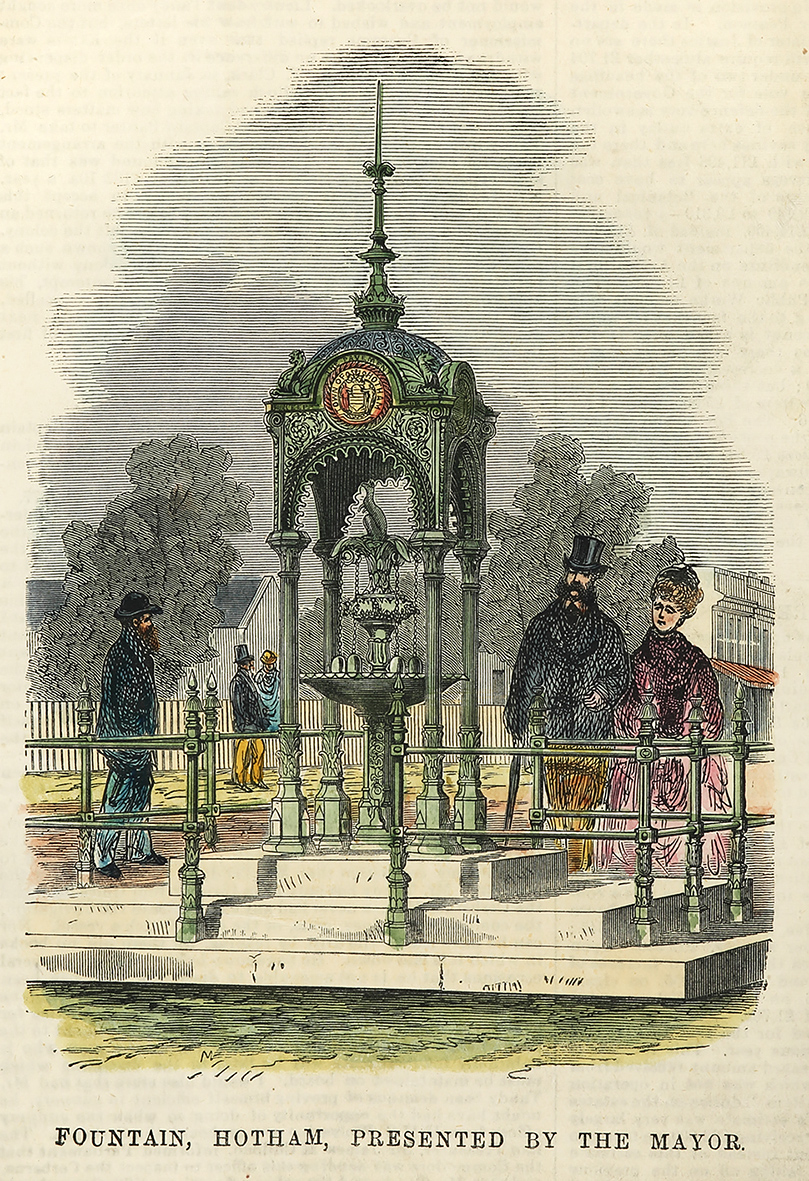 Scarce c.19th hand coloured engraving of the North Melbourne Drinking Fountain