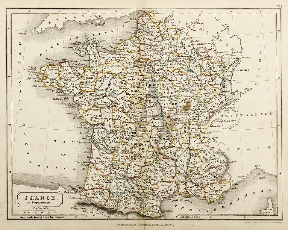 Small English c.19th map of France showing all it’s departments.