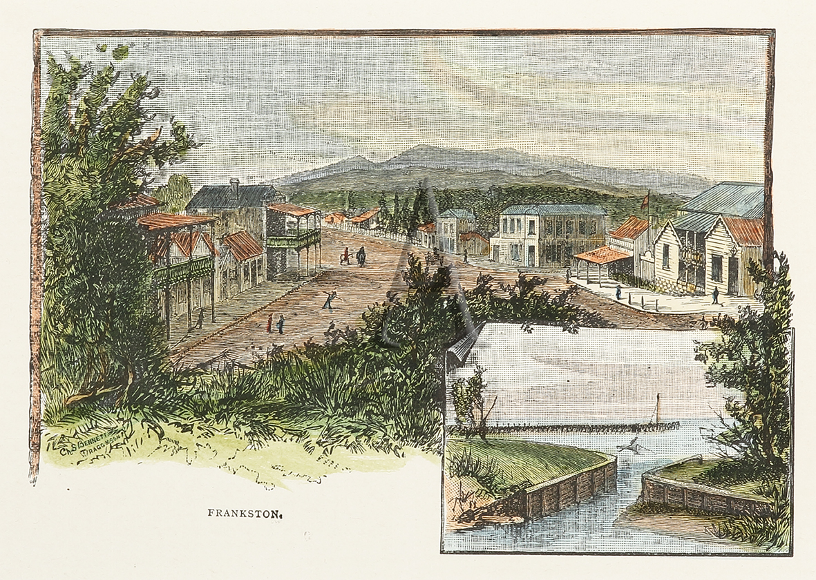 C.19th engraved view of Frankston. References: Ferguson, J. A. Bibliography of Australia Volumes 1-8, Canberra 1976 16439. Collections: National Library Australia: Bib ID 4084242 State Library Victoria: CCF 994.5 V66S State Library New South Wales: 74Vv5vQ4lxmZ