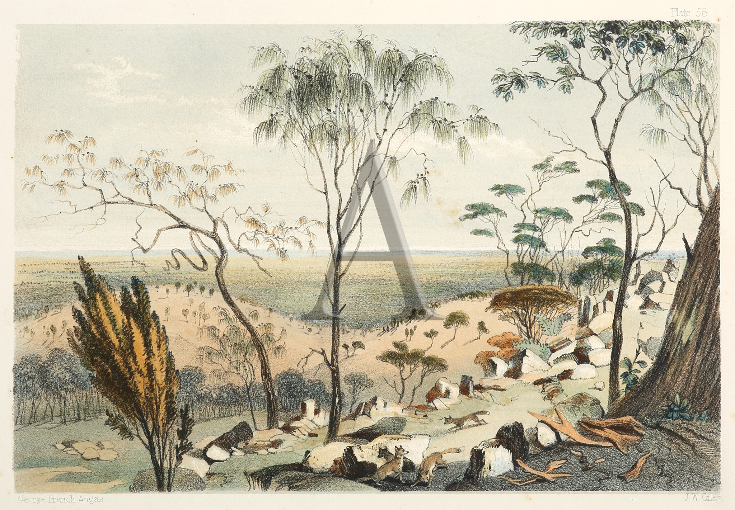 Angas was a painter, lithographer, engraver and naturalist, fourth child and eldest son of George Fife Angas, a merchant and banker. As the eldest son he was expected to join his father's firm, but some months in a London counting house proved a disillusioning experience. In 1841 he took art lessons for four months from Benjamin Waterhouse Hawkins, a natural history painter and lithographer, and armed with this instruction set out to see the world. He began in the Mediterranean publishing, A Ramble in Malta and Sicily in the Autumn of 1841.......Illustrated with Sketches Taken on the Spot, and Drawn on the Stone by the Author, the following year. Angas's father had established the South Australian Company in 1836 and had large areas of land as well as banking interests in the province. George French sailed for South Australia in 1843 in the Augustus, arriving in Adelaide on 1st January 1844. Within days he had joined an exploring party selecting runs for the South Australia Company. They traveled through the Mount Lofty Ranges to the Murray River and down to Lake Coorong and Angas sketched views of the countryside, native animals and the customs and dwellings of the Narrinyerri people. Later he drew scenes on his father's land - 28,000 acres in the Barossa Valley - and accompanied George Grey's expedition to the then unknown south-east as unofficial artist. In July 1844 Angas visited New Zealand. Guided by two Maoris, he traveled on foot and by canoe through both islands, painting portraits of Maoris and views. Angas's father died in 1879, leaving a vast estate from which George French received only a annuity of 1000 pounds. In 1884 he went to Dominica on a collecting expedition, finding shells, moths, butterflies and birds. Dogged by rheumatism and neuralgia during his last years, Angas died in London on 4 October 1886.