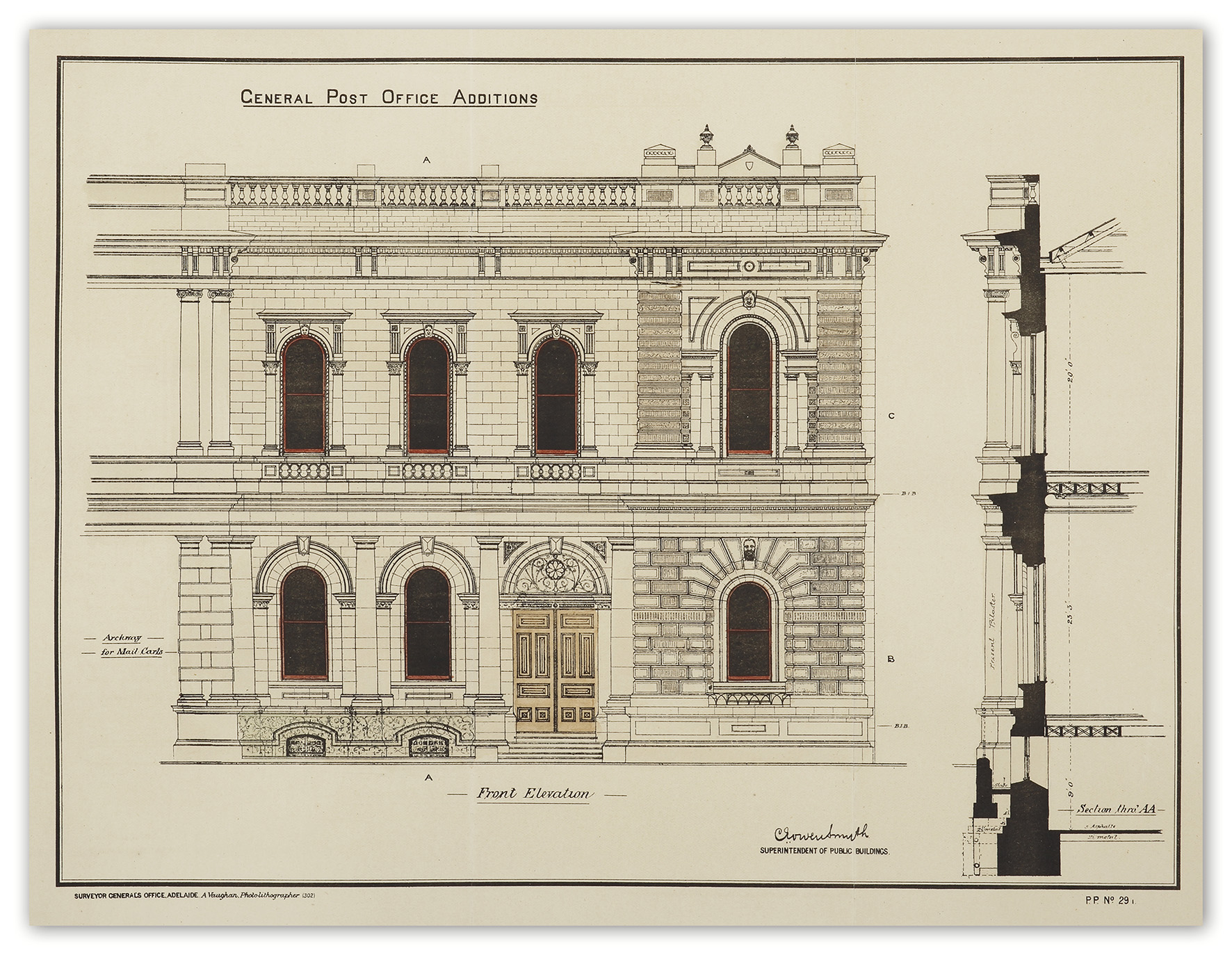 Superb colonial architectural design for the additions to Adelaide’s GPO.