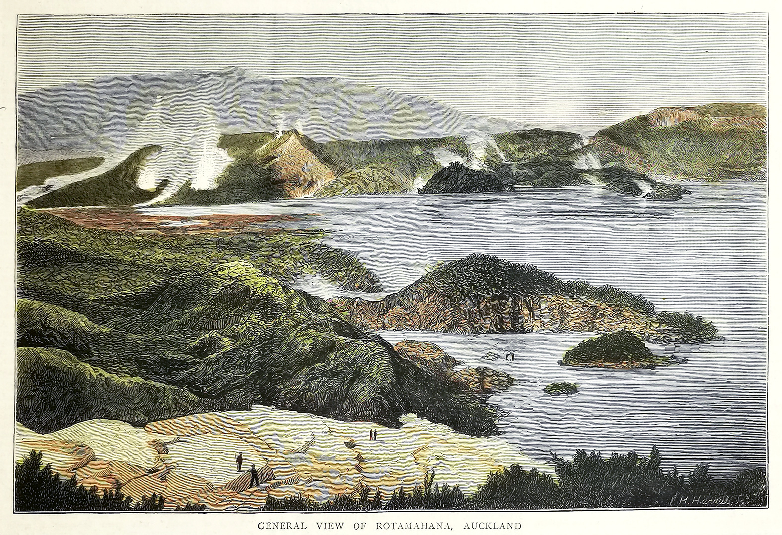 Lake Rotomahana is a small lake in northern New Zealand, located 25 kilometres to the east of Rotorua. It is immediately southwest of the dormant volcano Mount Tarawera, and its geography was substantially altered by a major eruption in 1886. … Read Full Description