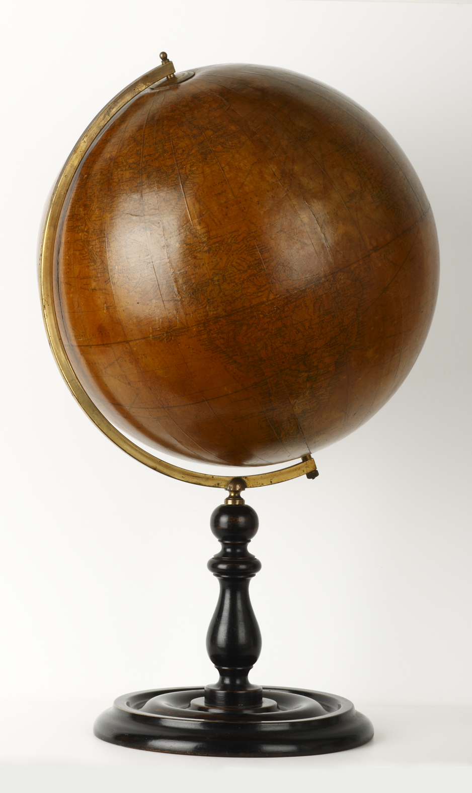 Good size early C20th terrestial globe with a 310mm diameter on an Ebonised turned stand attractive brass fittings.