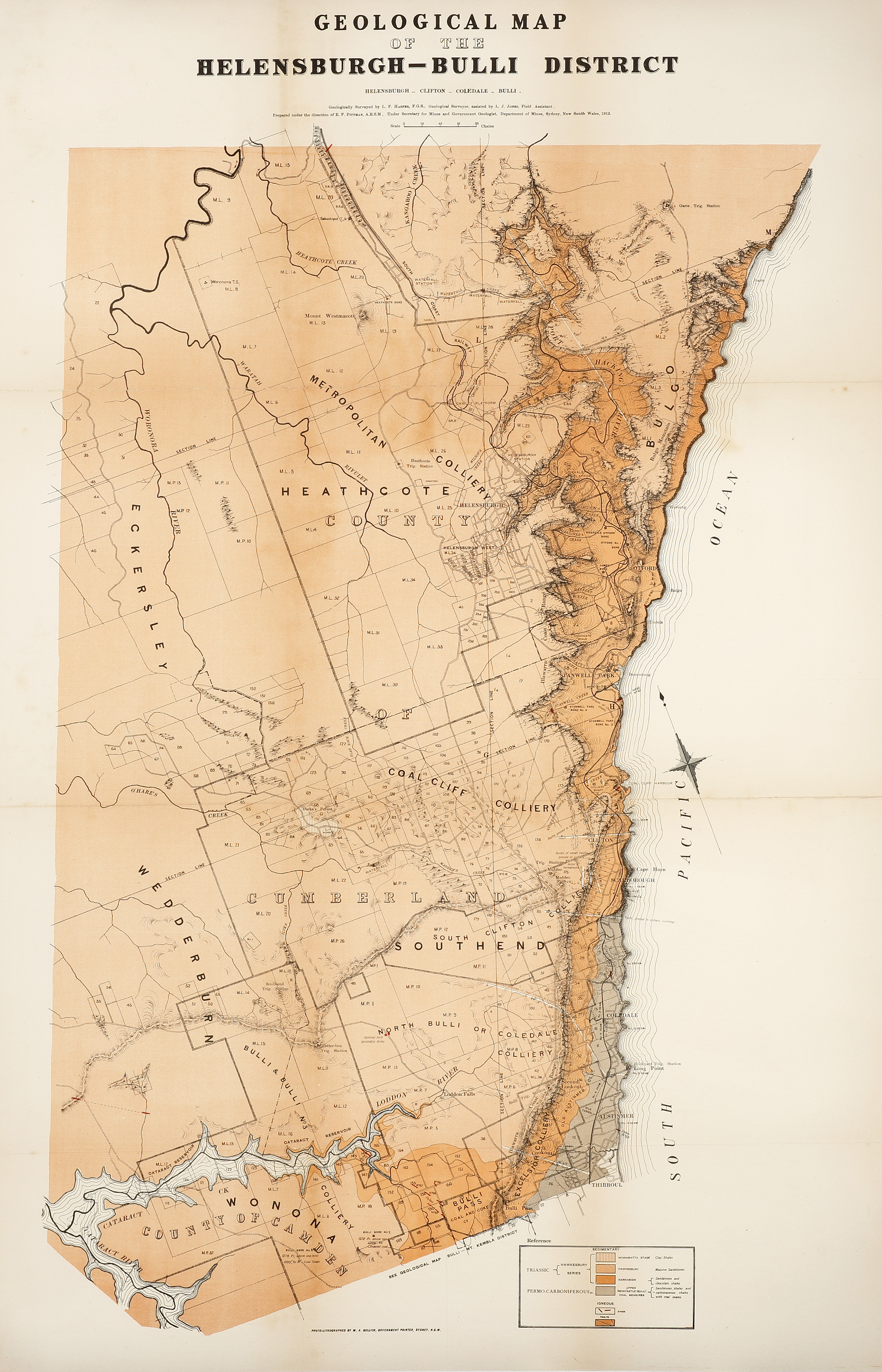 Rare large early c.20th colour lithographed geological map covering the Wollongong area by Edward Fisher Pittman (1849-1932).