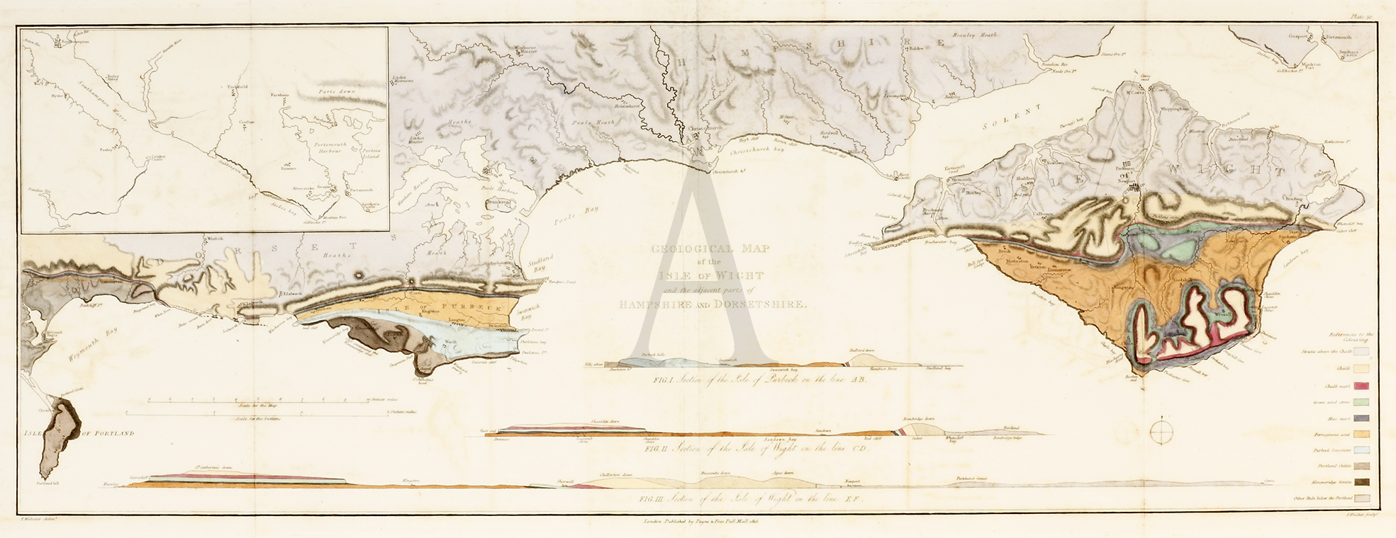 Detailed geological map of the world heritage ‘Jurassic Coast’. From Henry Charles Englefield (1752-1822), A Description of the Principal Picturesque Beauties Antiquities,and Geological Phenomena of the Isle of Wight.
