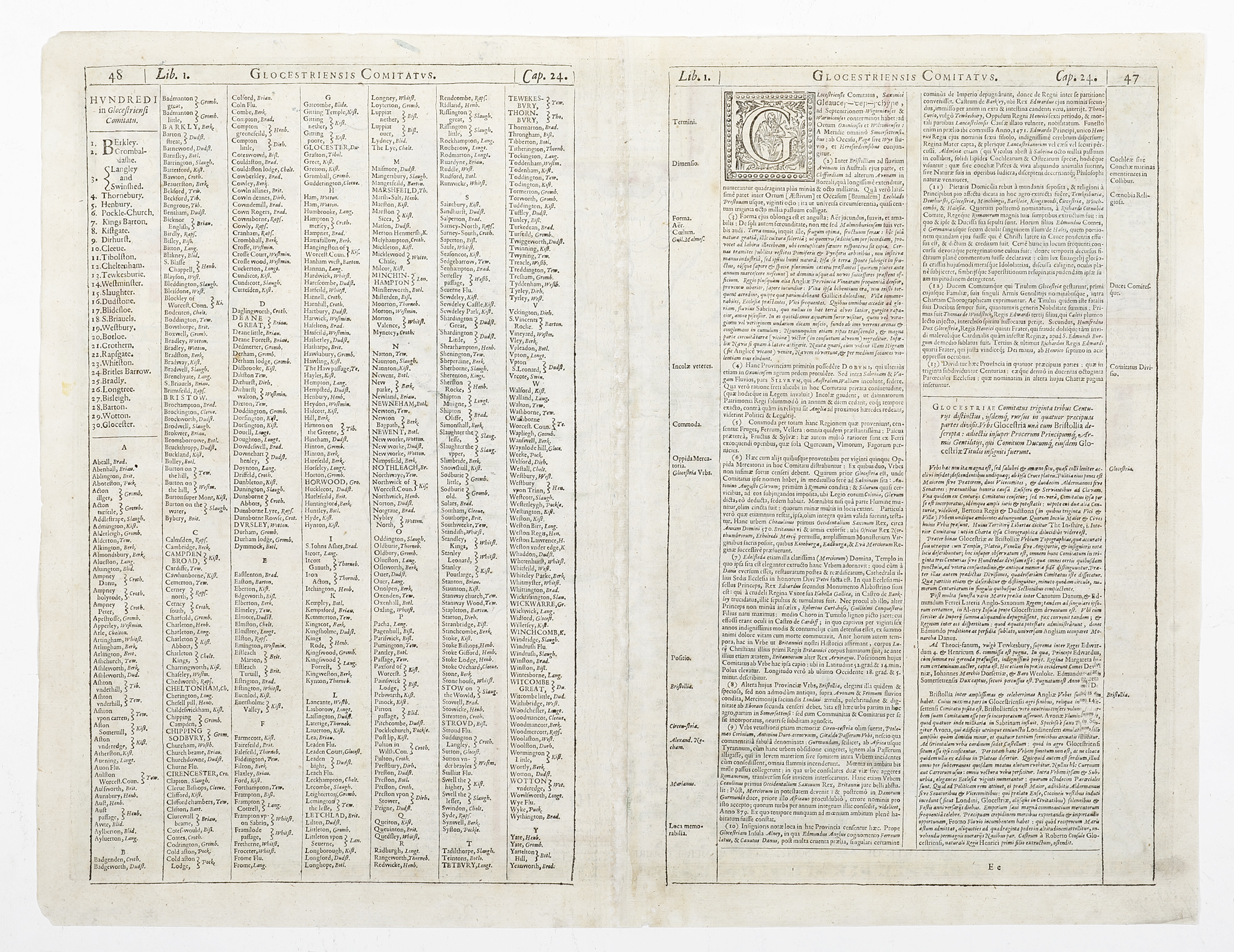 Rare first edition of Speed’s map of Gloucestershire sold by John Sudbury and George Humble, with English text on the verso. One of the most sought after maps of Gloucestershire and usually found in much later editions.