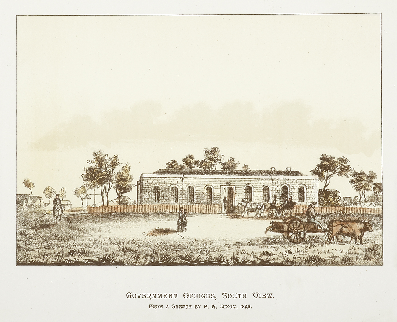 Scarce colour lithograph of Government House, Adelaide. From Wigg & Son, 14 views of old Adelaide : from sketches in 1840-1849 / by S.T. Gill, F.R. Nixon, S. Calvert & O. Korn Collections: National Library Australia: Bib ID 6419647