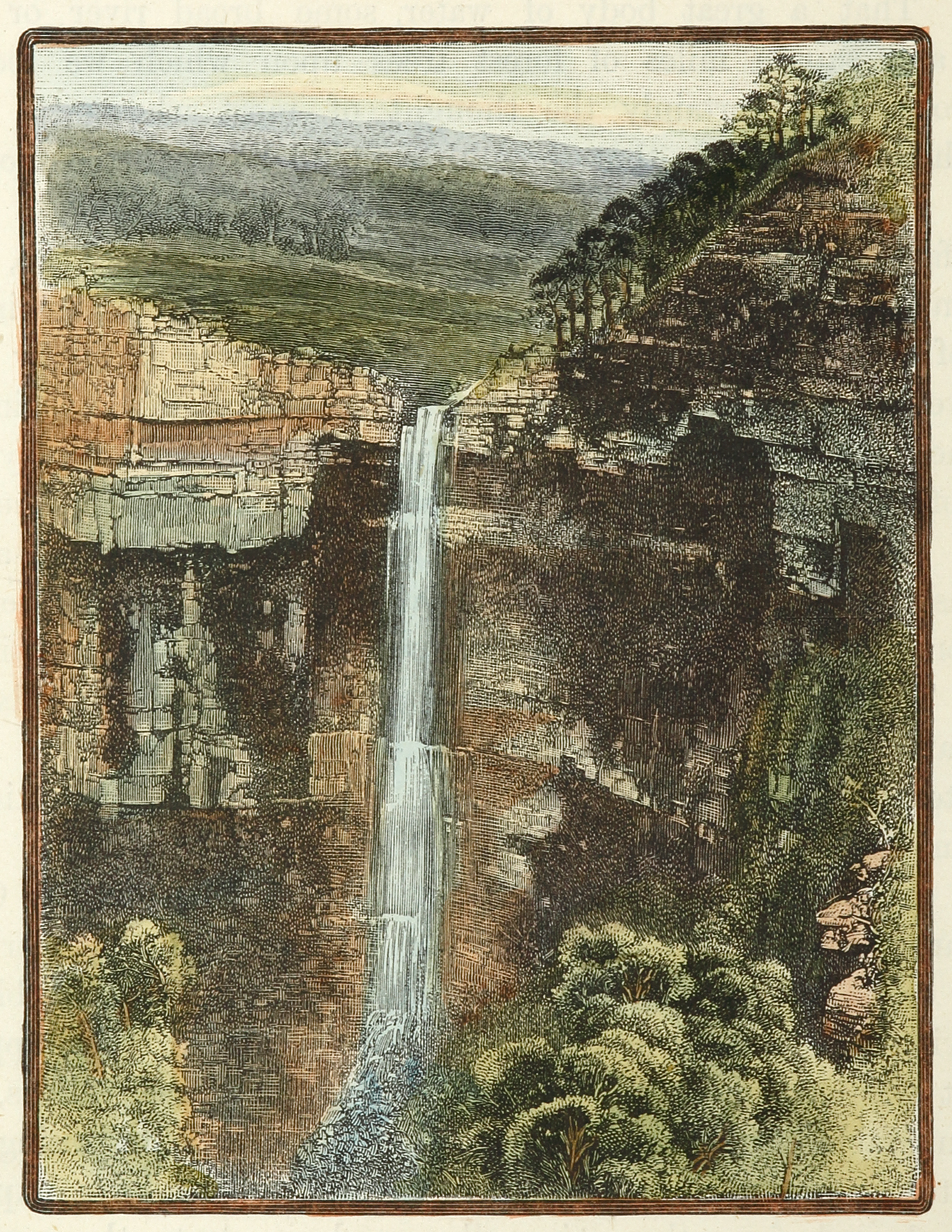 Colonial engraved view of Govett’s Leap, Blue Mountains.