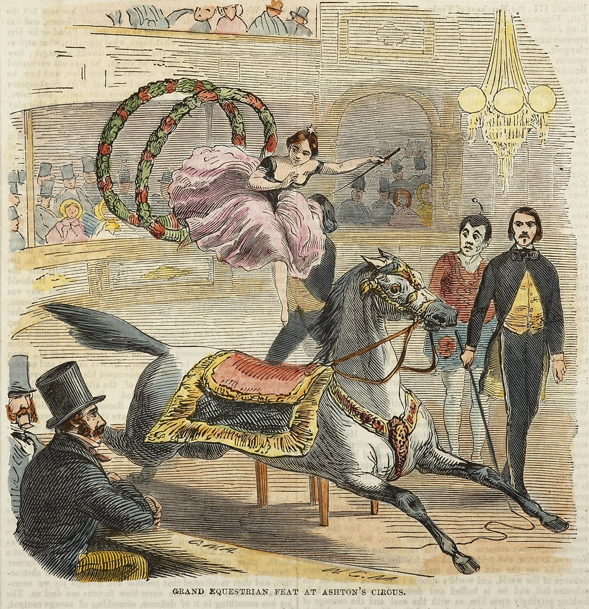 Rare colonial engraving of Miss Isabella Irwin performing her equestrian tricks at Ashton’s Circus at John Malcom’s Adelphi Hotel in York Street, in 1855. The hotel became known as Ashton’s Royal Ampihtheatre.