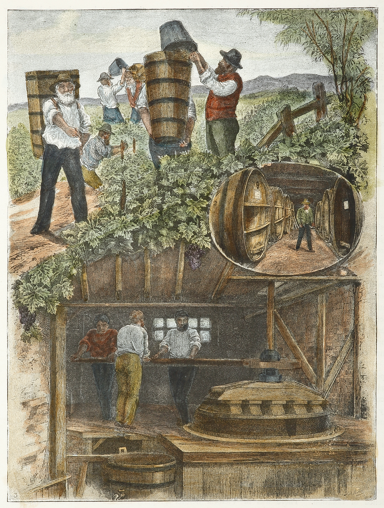 Colonial engraving of wine making in Victoria.