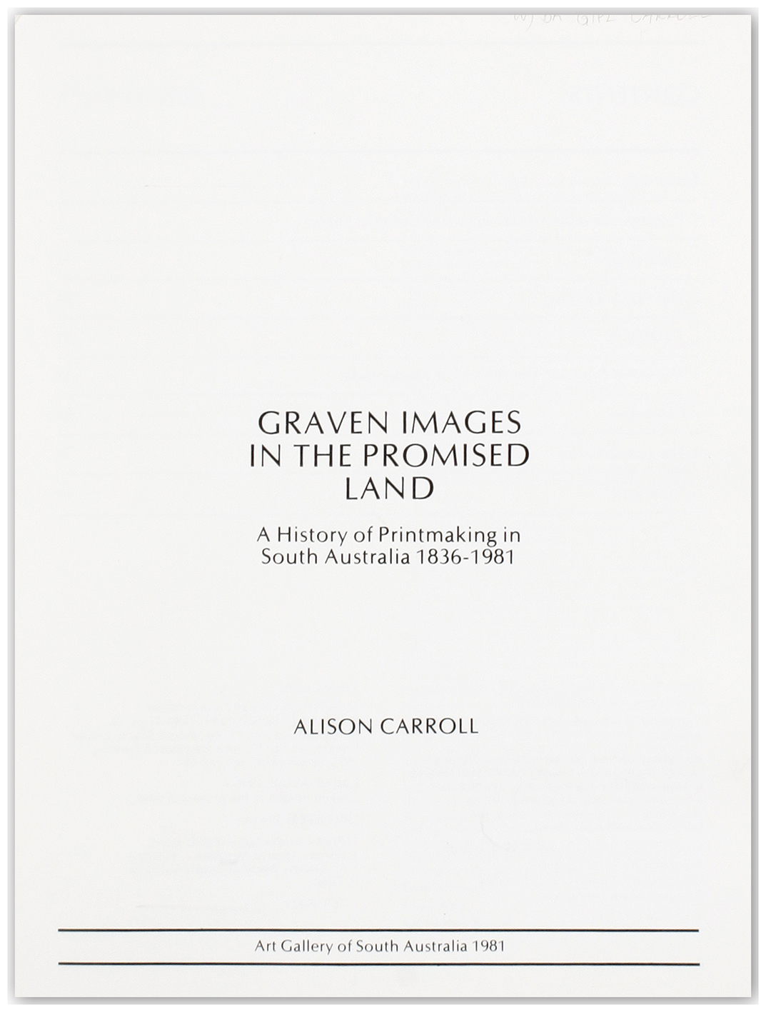 Excellent reference work on the history of printmaking in South Australia. Set out chronologically in four chapters and well illustrated. Published by the Art Gallery of South Australia, 1981.