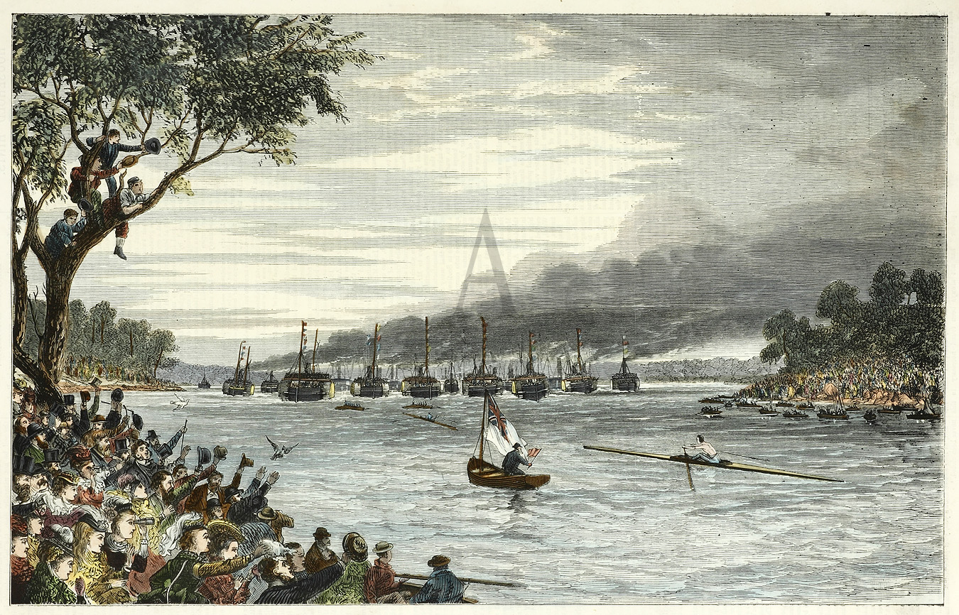 Between Trickett and Beach around 4.30 pm, 30 June 1877. Very rare engraving from the original edition of The Illustrated Sydney News, which was published from 1854 to 1889 and included a number of high quality engravingsin each issue.