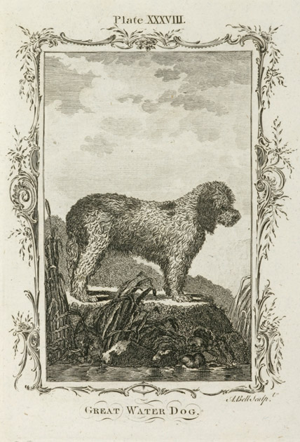 Early c.19th engraving of the Great Water Spaniel. From Comte de Buffon, ‘Histoire Naturelle’