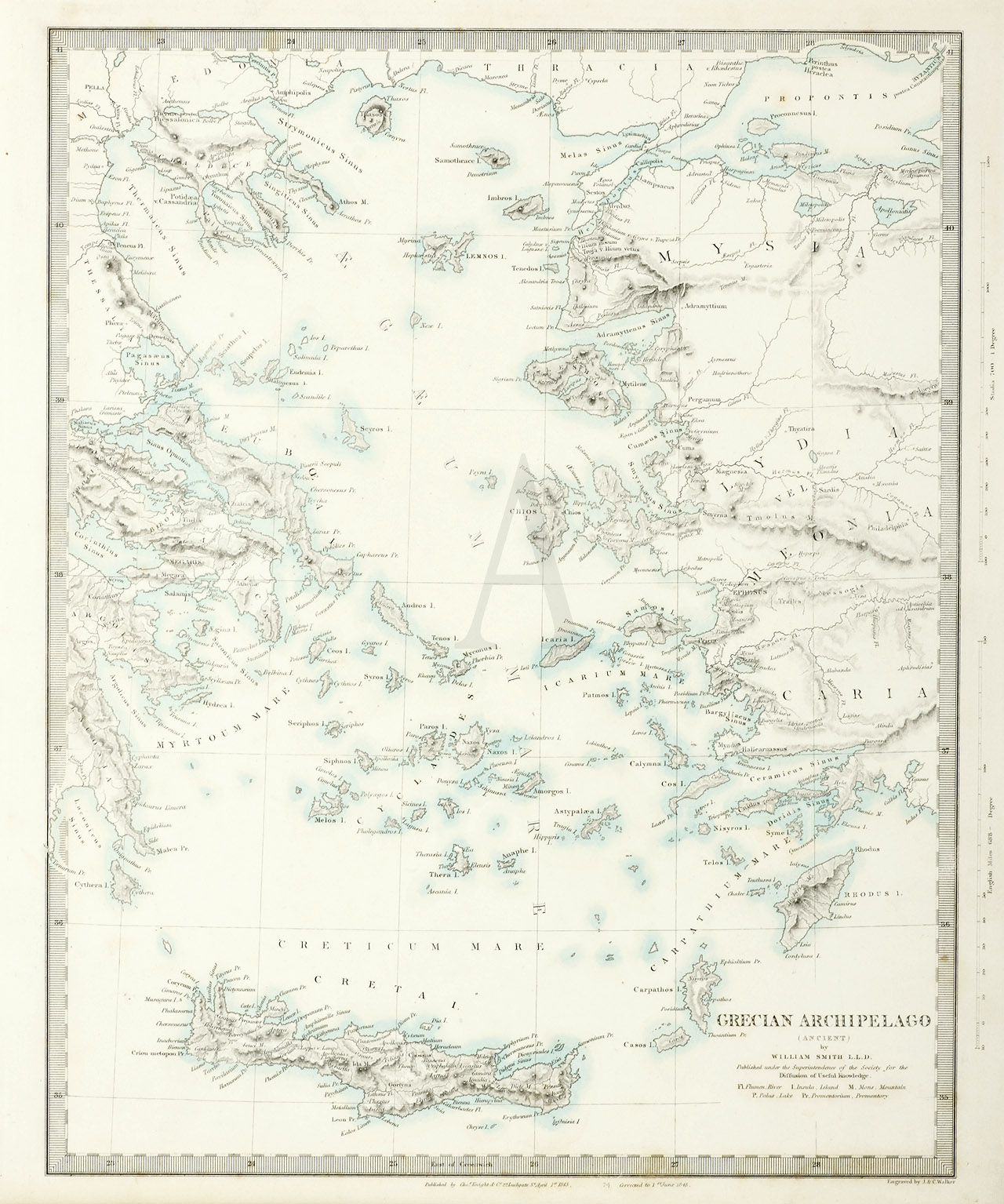 Very detailed map of the Greek islands published by the Society for the Diffusion of Useful Knowledge.