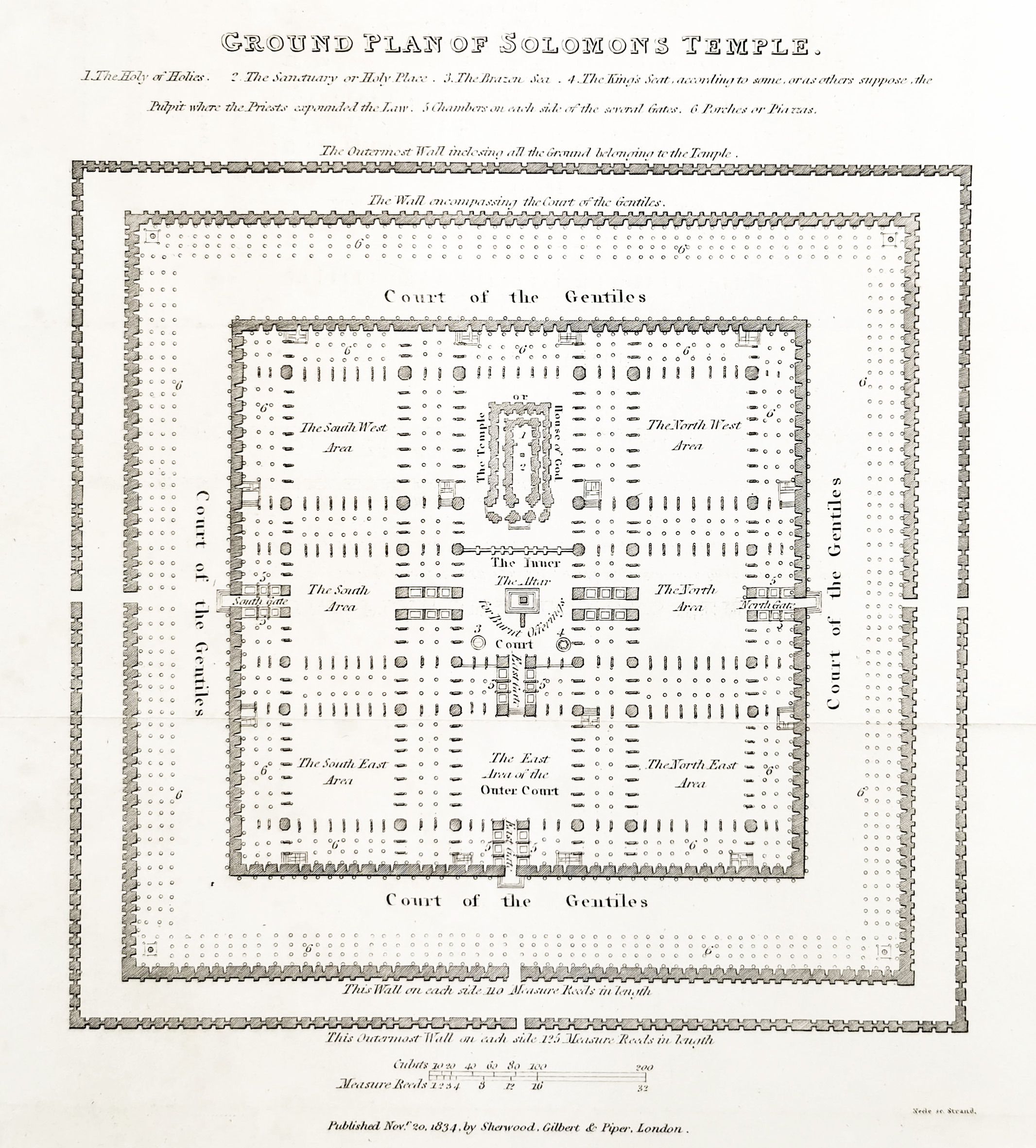 C19th engraving of the plan of Solomon’s Temple indicating the particular features in the layout as stated below.