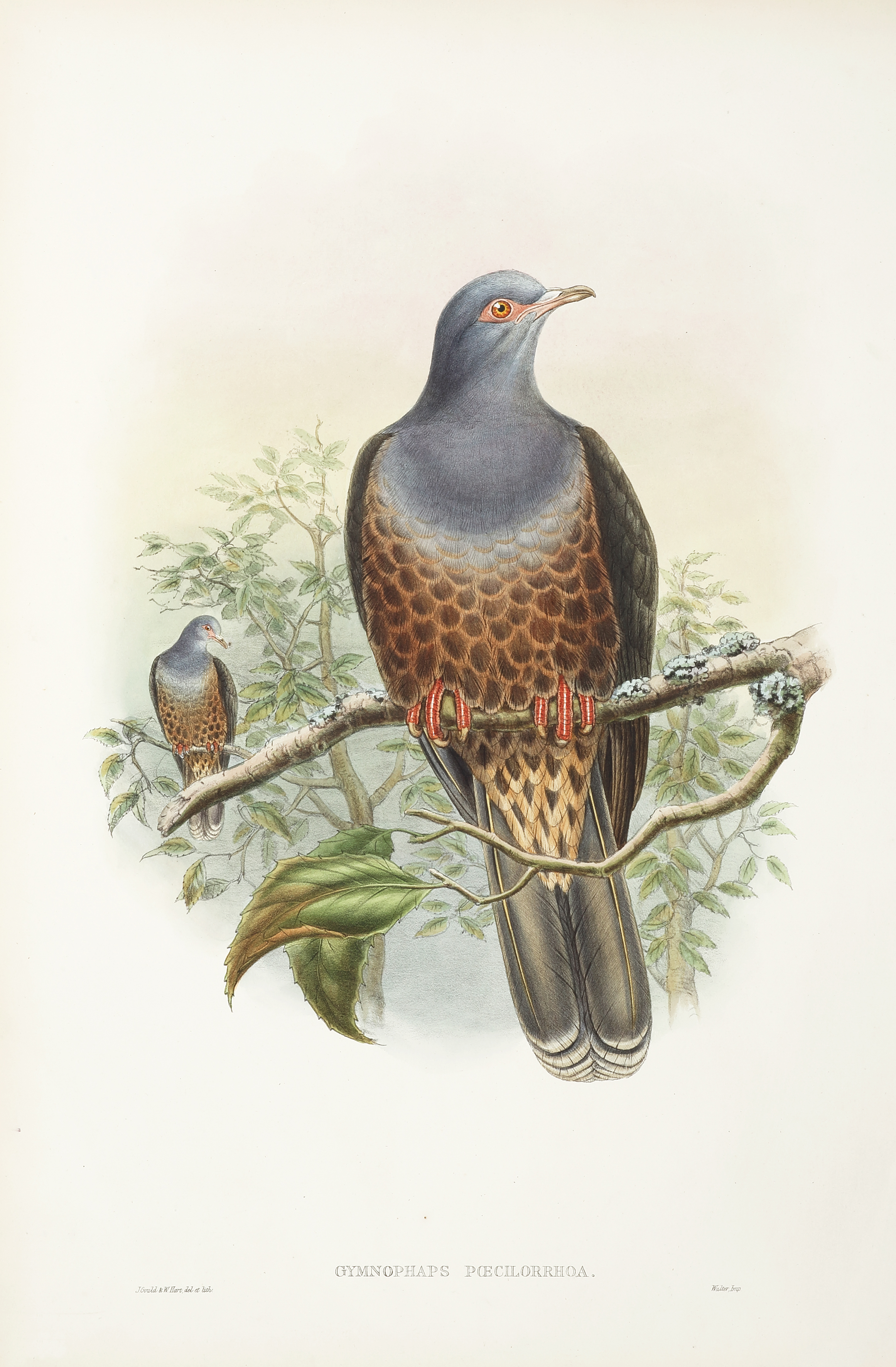 Magnificent lithograph of the Sombre pigeon from John Gould’s last monumental ornithological series.