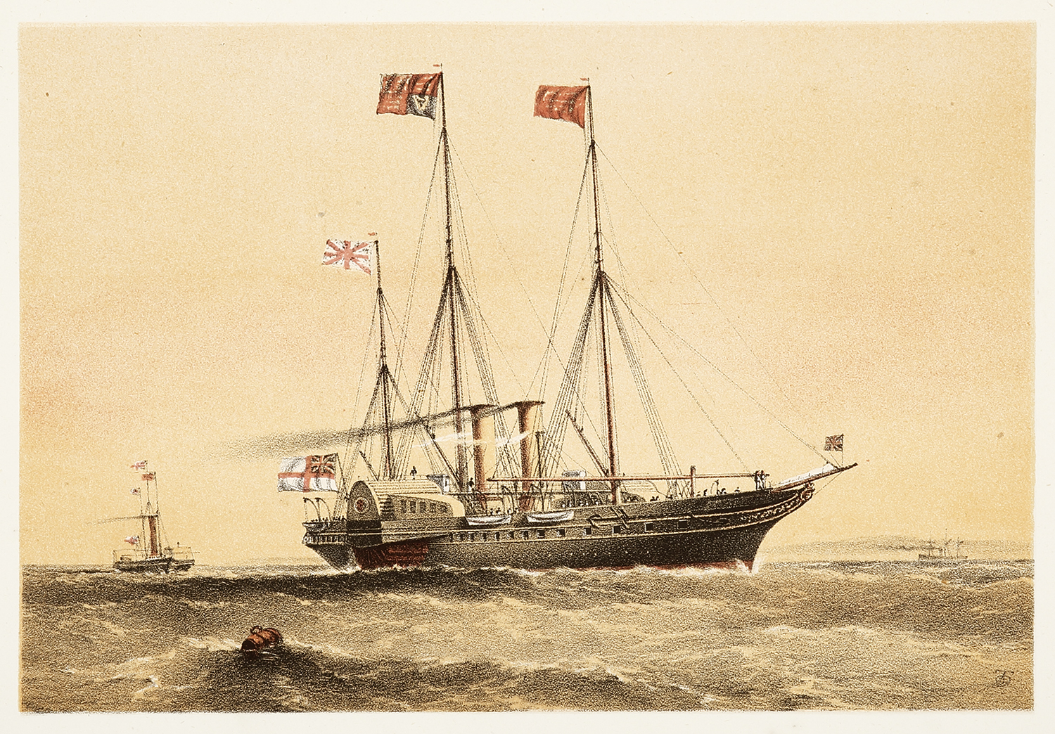 HMS Victoria and Albert II, a 360-foot (110 m) steamer launched 16 January 1855, was a royal yacht of the sovereign of the United Kingdom until 1900, owned and operated by the Royal Navy. Of 2,470 tons, the yacht could make 15 knots (28 km/h; 17 mph) on her paddles. There were 240 crew. The ship was used by Prince Arthur on the occasion of his visit to Heligoland in 1872.[1] Victoria and Albert II was scrapped in about 1904. El Horria was built to the same specifications for Isma’il Pasha, the Khedive of Egypt in 1865 and is the oldest steamship afloat.