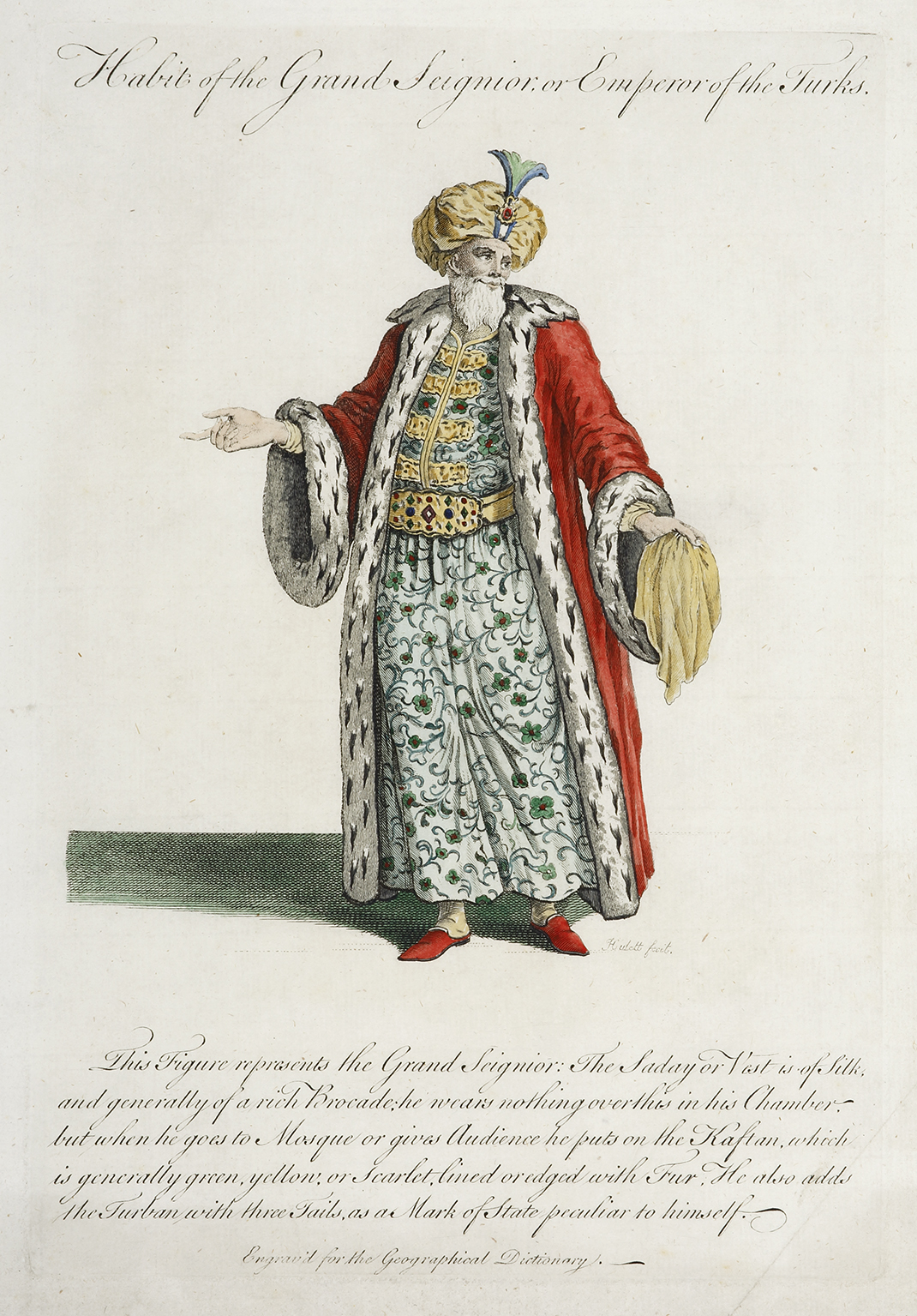 C.18th portrait of Mustafa II, Sultan of the Turks, 1664-1703. From Barro, John, A New Geographical Dictionary.