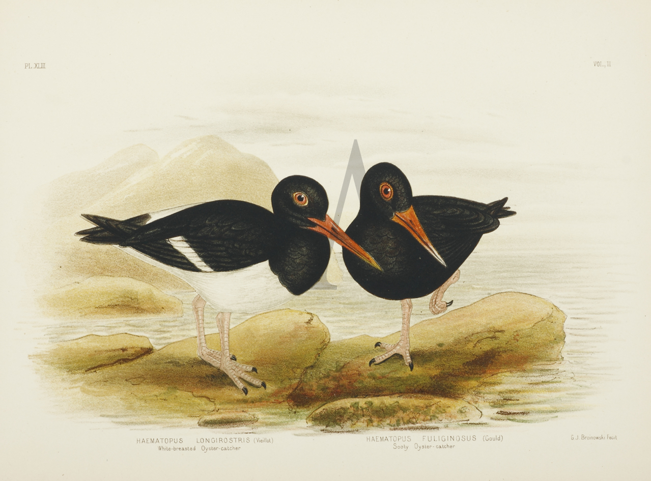Lithograph of oyster catchers from Broinowski’s, Birds of Australia.