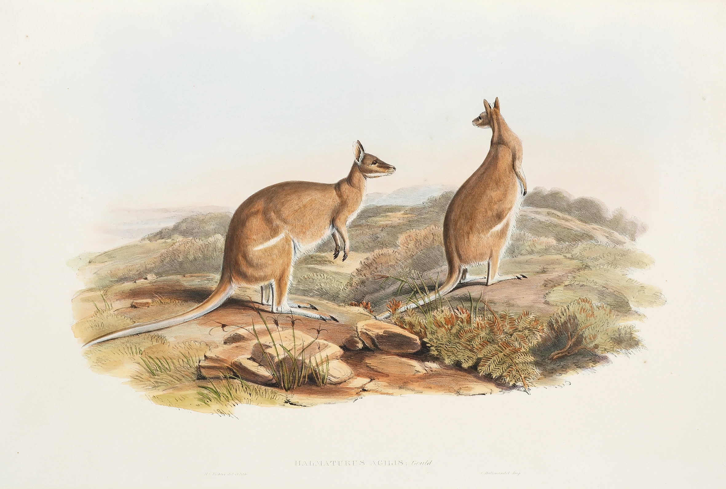 Rare c.19th lithograph of the Agile Wallaby from John Gould’s epic work on Mammals of Australia published in London 1845-1863, the most important study on  Australian Fauna. There were only 175 subscribers to the series and now most of those complete … Read Full Description
