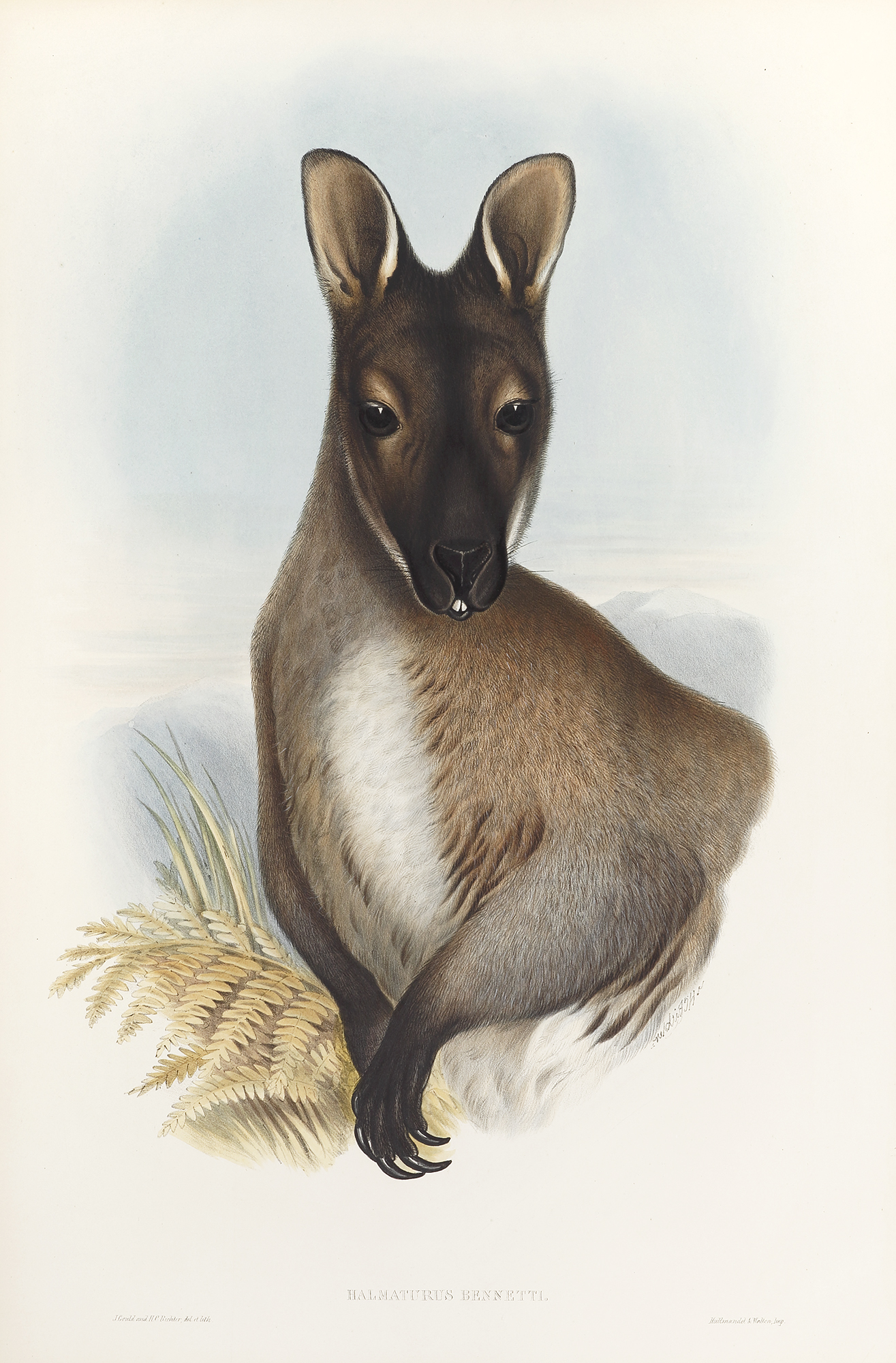 Rare c.19th lithograph of the Red-necked Wallaby or Bennet’s Wallaby from John Gould’s epic work on Mammals of Australia published in London 1845-1863, the most important study on  Australian Fauna.