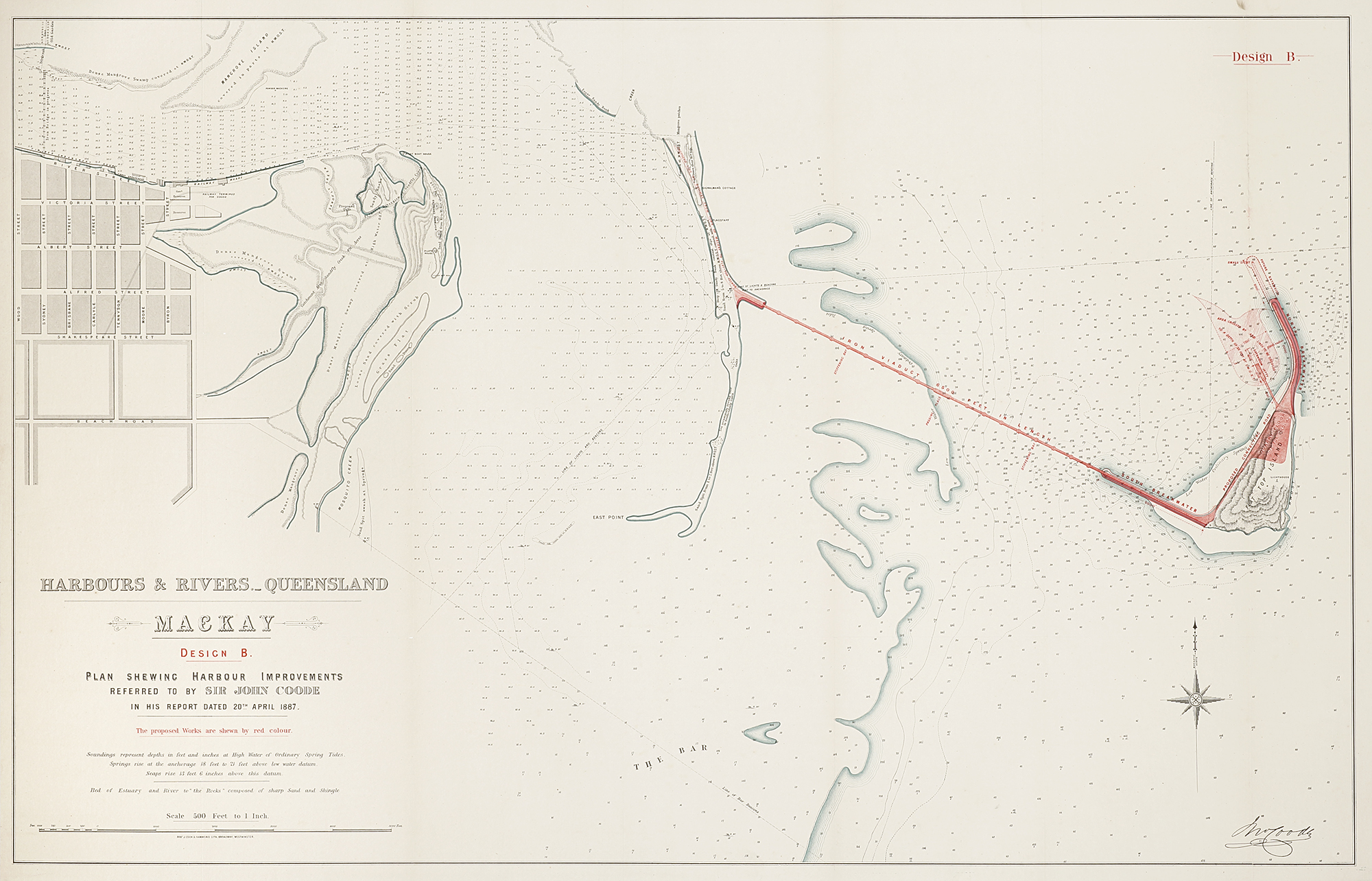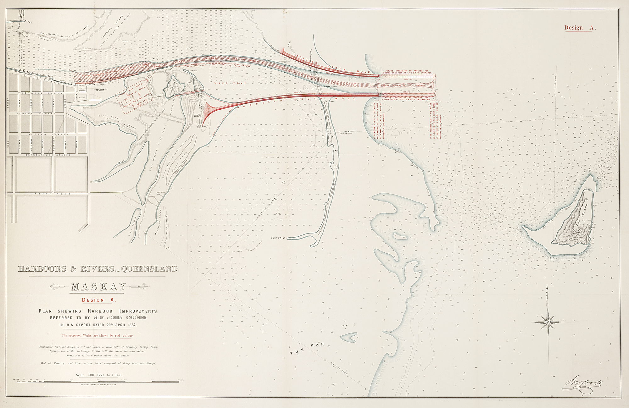 A scarce set of three very large scale important colonial maps showing Sir John Coode’s plans for the improvement of Mackay’s harbour dated 1887.