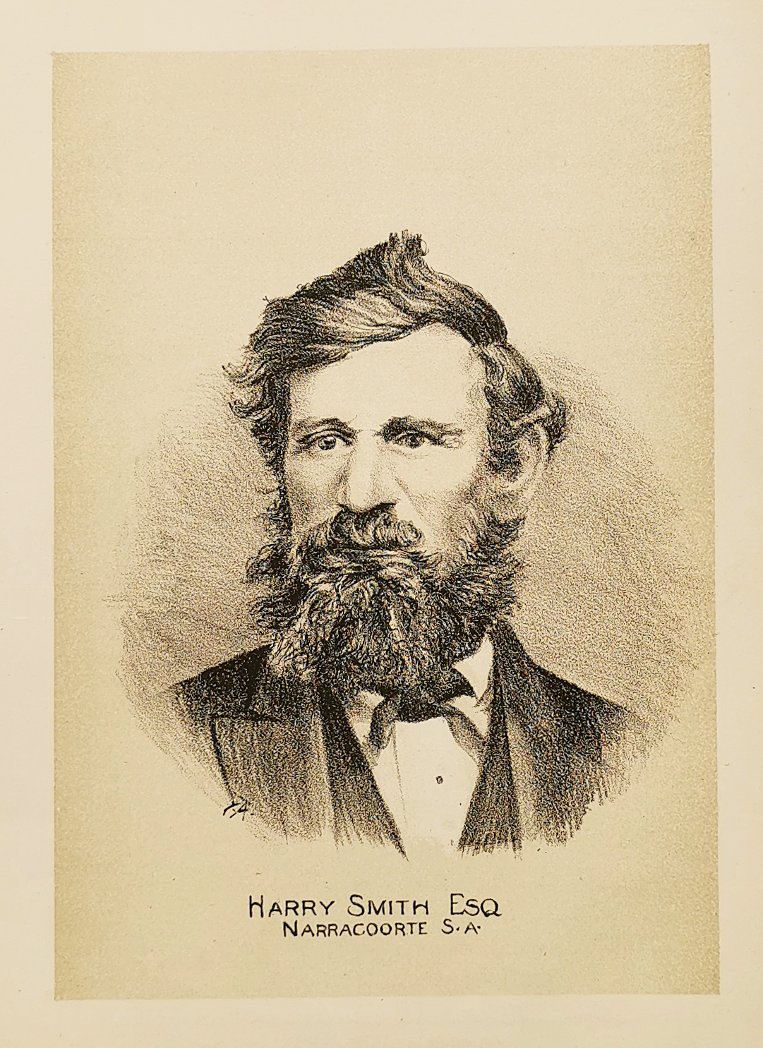 Scarce c.19th lithographic portrail of Harry Smith, Narracoorte.