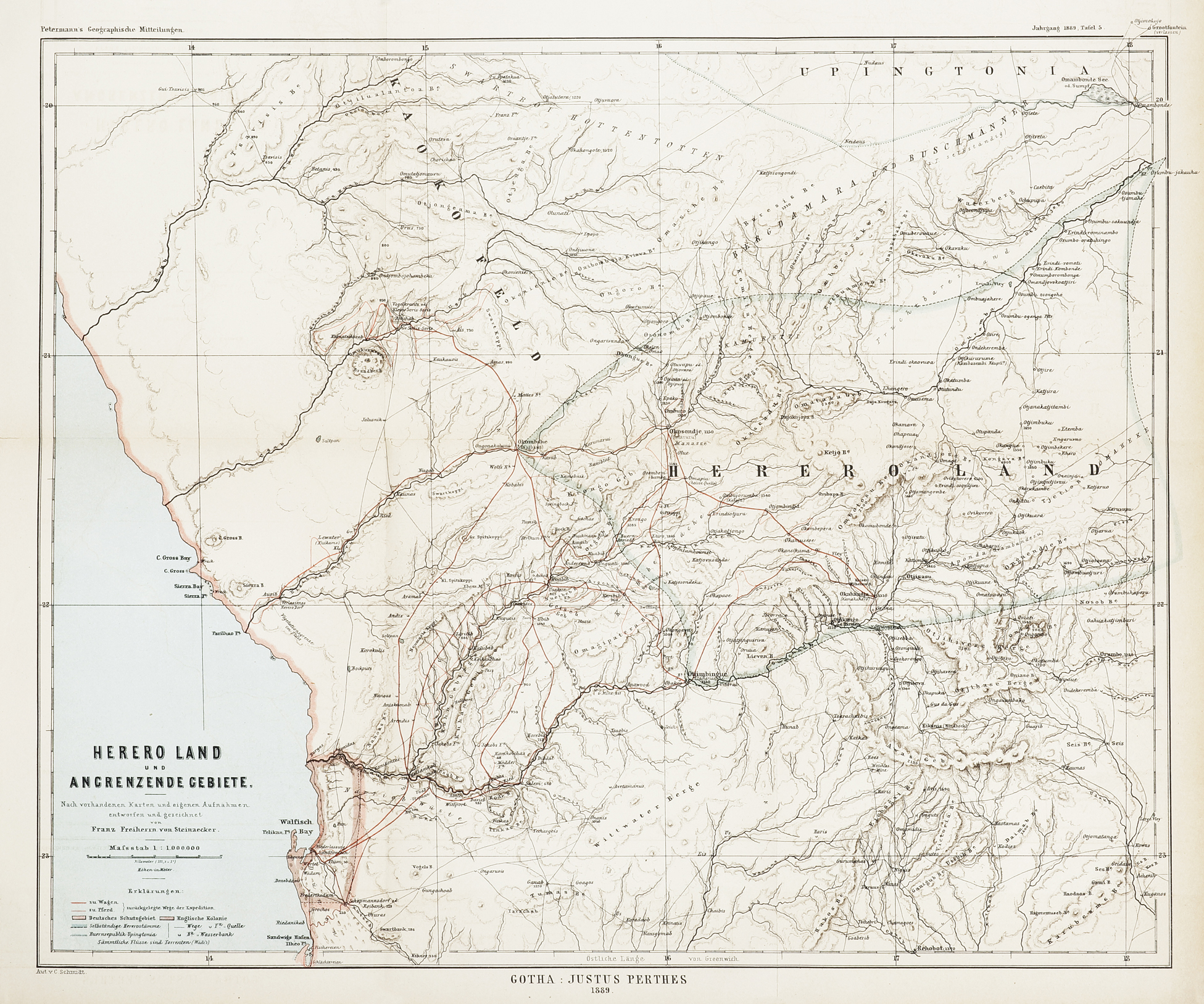 Scarce detailed map of Herero lands of what became German South West Africa.