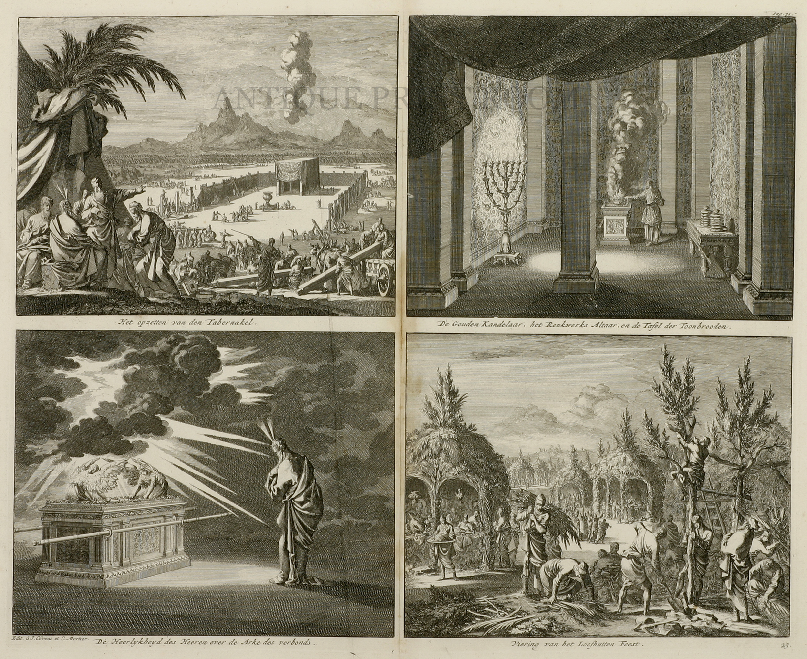 The engravings are by or after Luycken (Luyken), Elgier, Picart, Goeree, and others. Not a full Bible in the usual sense, Mortier presents the books of the Bible through his illustrations, each accompanied by a short telling of the story in standard prose. The fine, large engravings were produced by or from the works of several masters. Many were later reproduced and used again in later and lesser bibles, in most case significantly reduced.